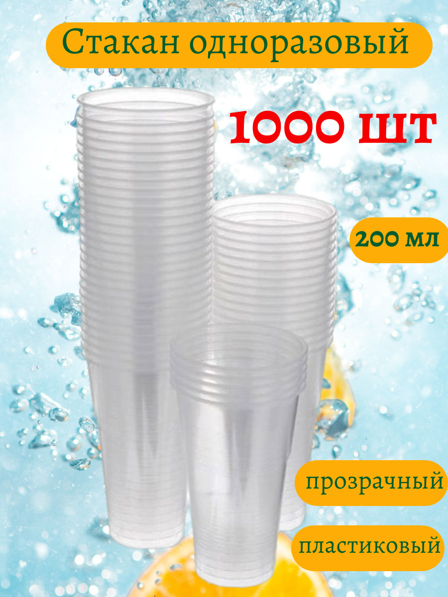 Стакан одноразовый 1000 шт. 200 мл Для холодных и горячих напитков до 70 градусов по Цельсию прозрачный, пластиковый.