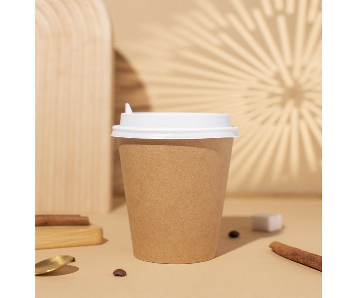 Стаканы одноразовые бумажные Комус, для горячих напитков, 300 мл, 50 штук, коричневые