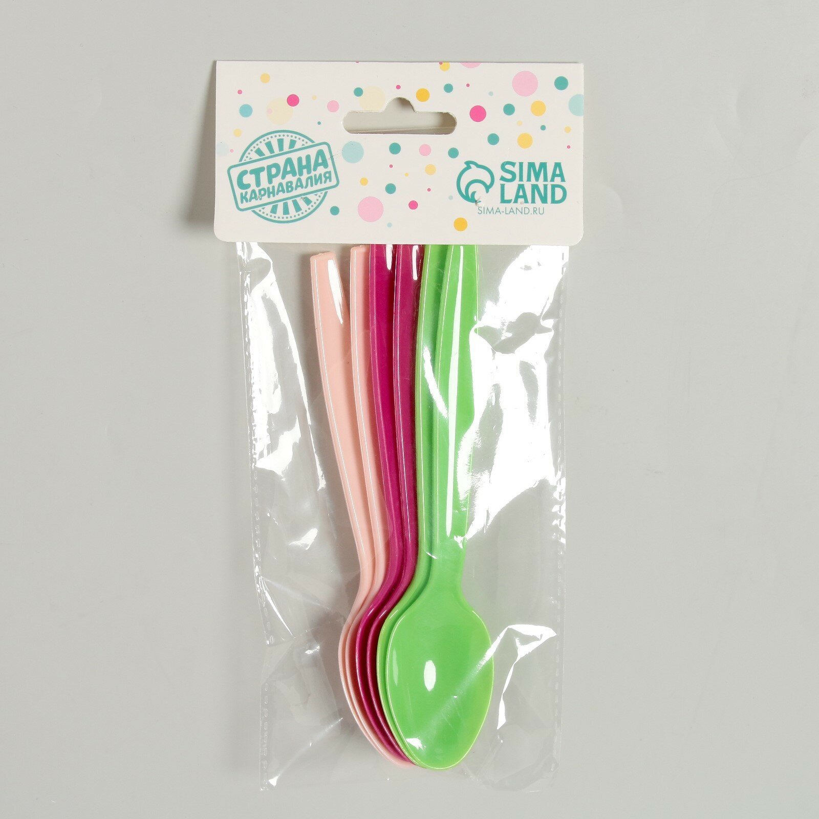 Ложка пластиковая, в наборе 6 штук, цвет розовый
