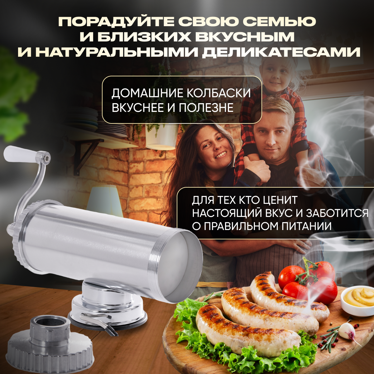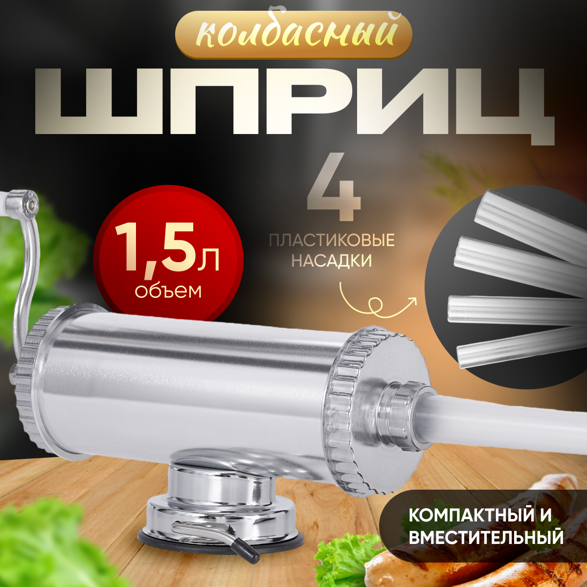 Шприц колбасный горизонтальный на 1.5 л. 4 Насадки. Диск с силиконовым покрытием. Master Feng интересное: