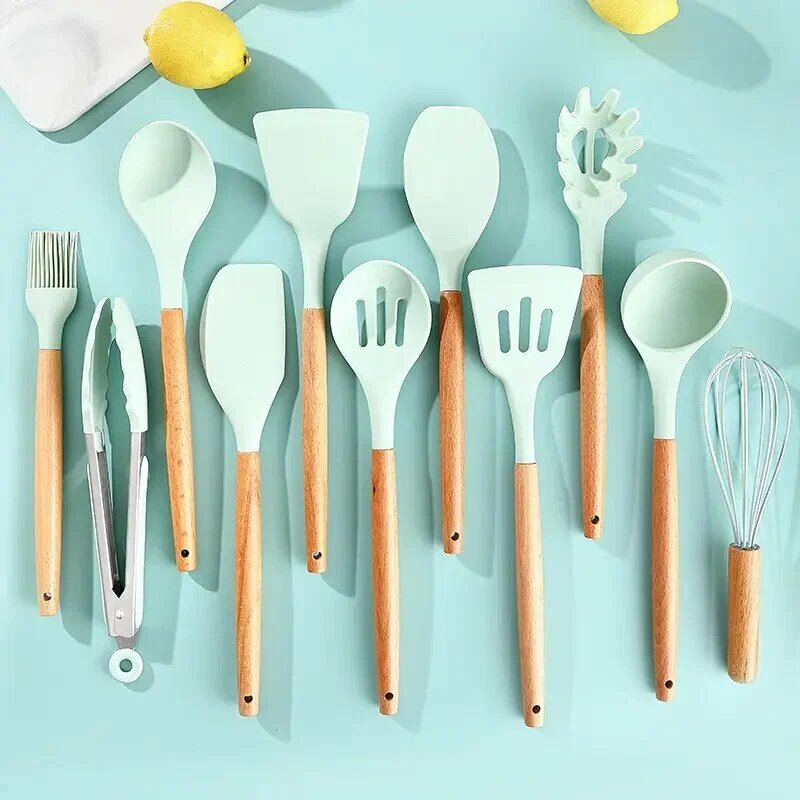 Набор кухонных принадлежностей из бука и силикона/зелёный интересное: