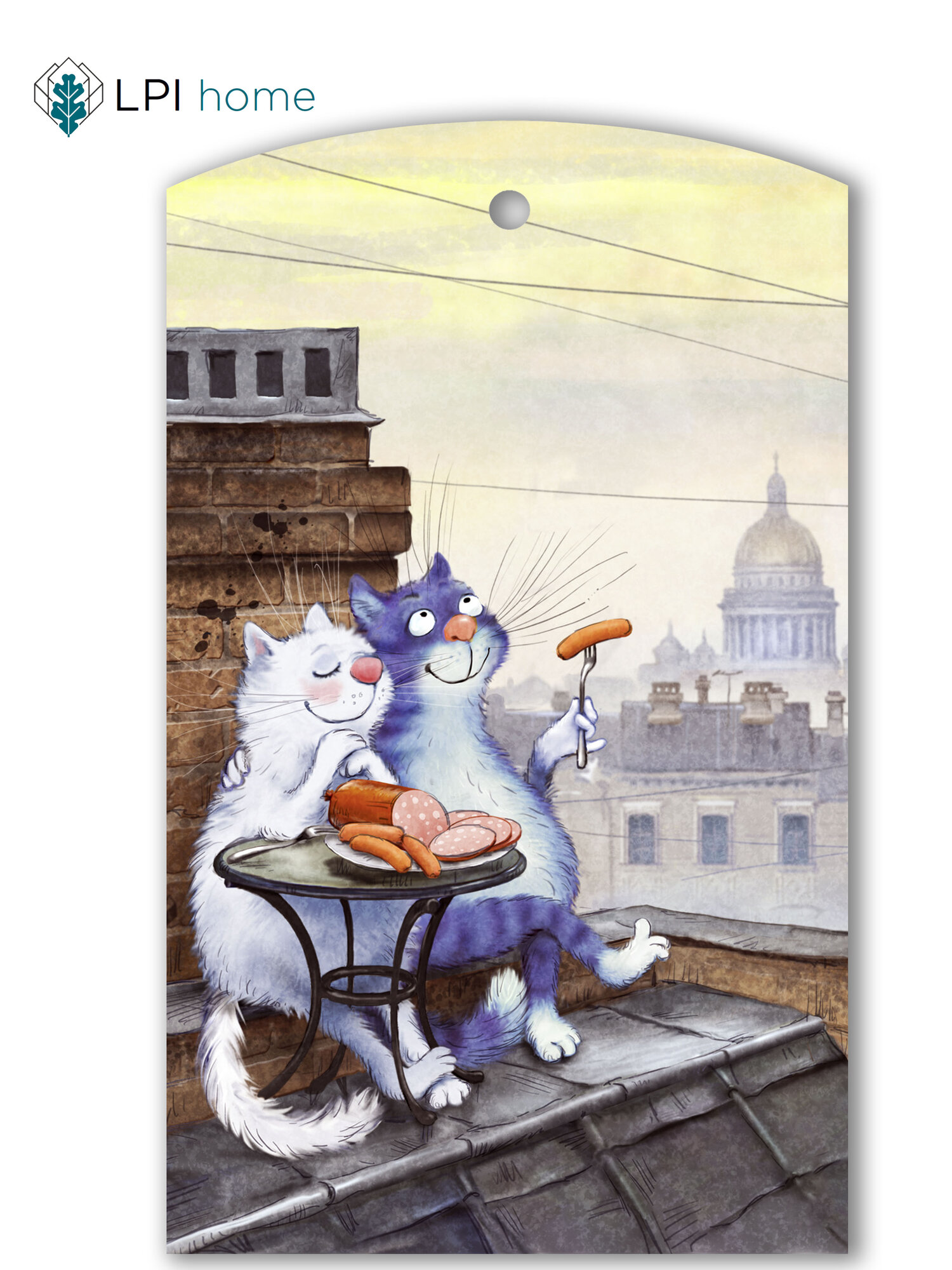 Доска разделочная сувенирная с рисунком "Синие коты, На крыше" Рина Зенюк, 18х30см интересное: