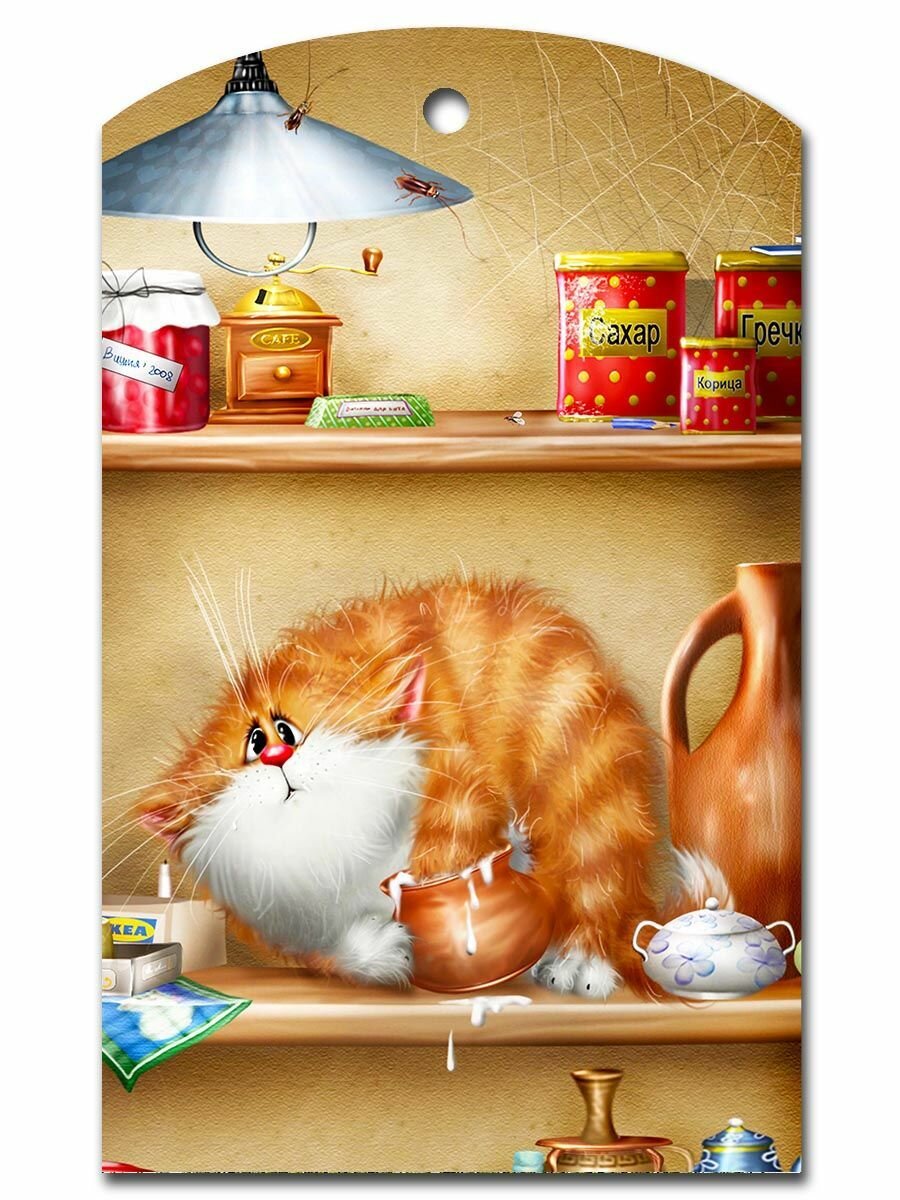 Доска разделочная сувенирная 18*29 см. "Кот на полке" интересное:
