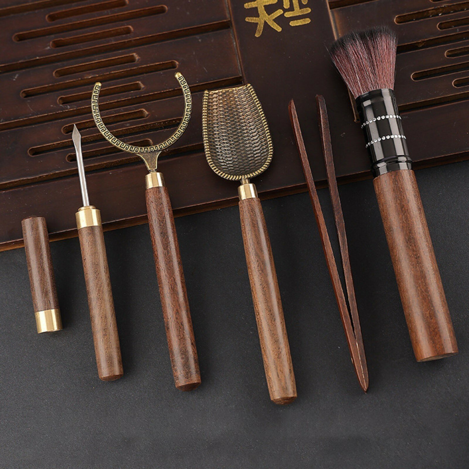 Купить Набор инструментов для чайной церемонии: кисть, ухват, щипцы, нож, мерная лопатка