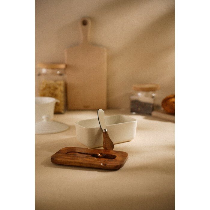 Sima-Land Home Паштетница фарфоровая с ножом SL Home «Южная акация», 2 предмета: паштетница с деревянной крышкой 650 мл, нож 12,3×3 см интересное: