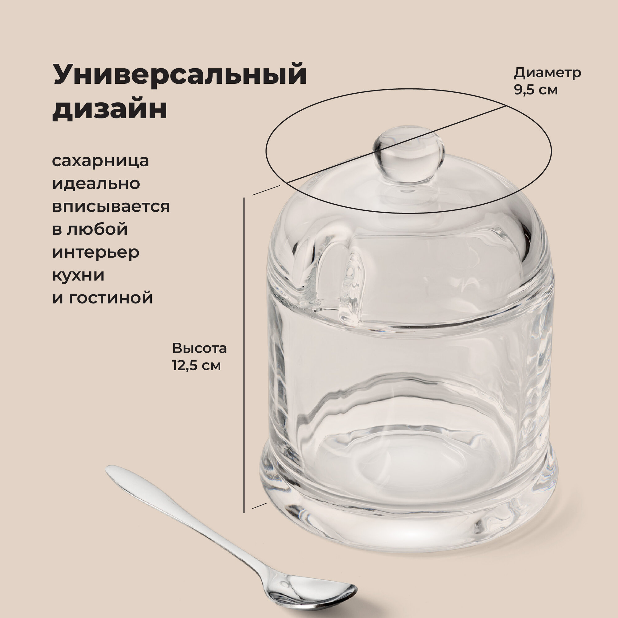 Купить Сахарница стеклянная с ложкой, Shiny Kitchen, Прозрачная сахарница с крышкой, 260 мл