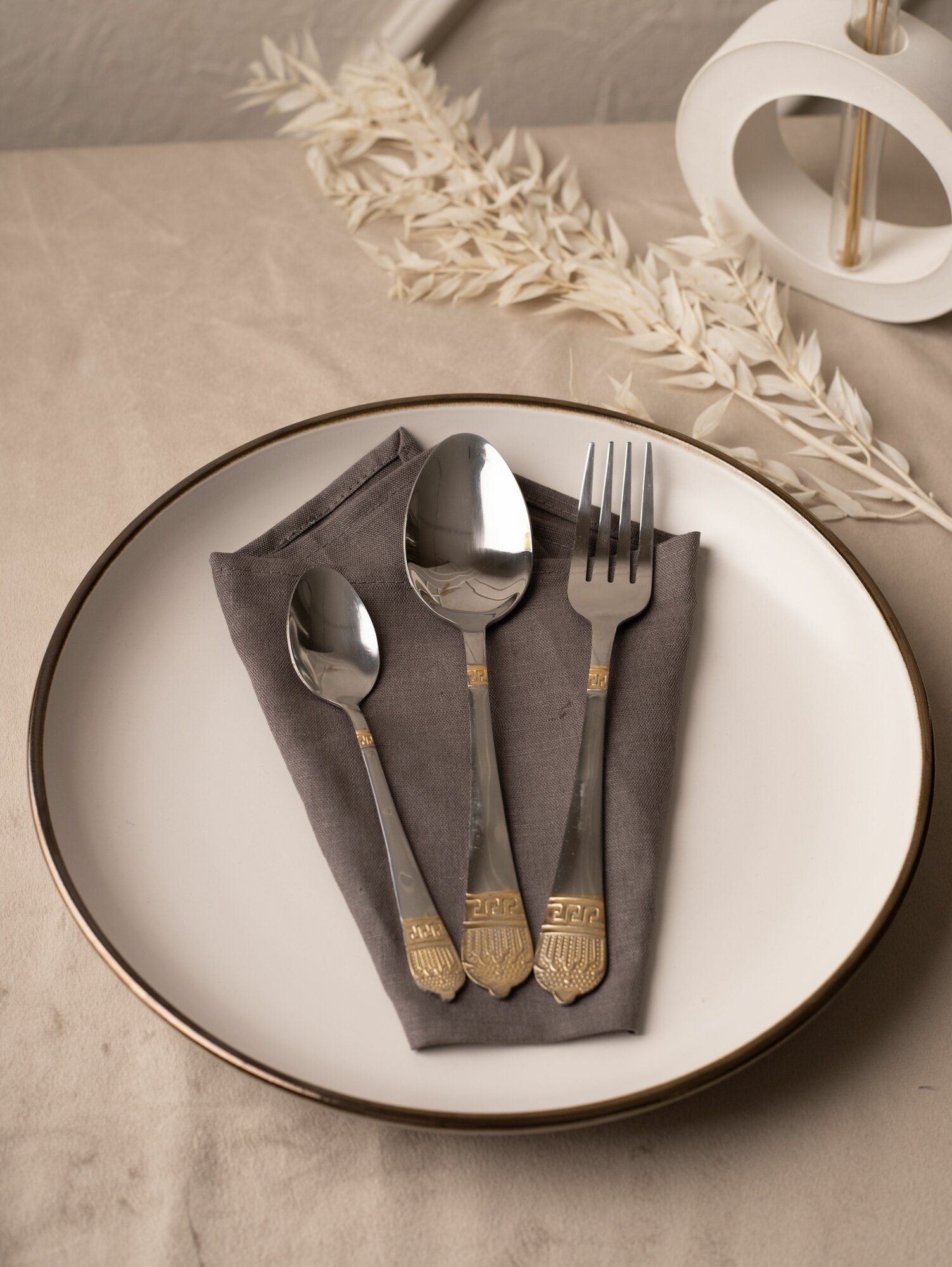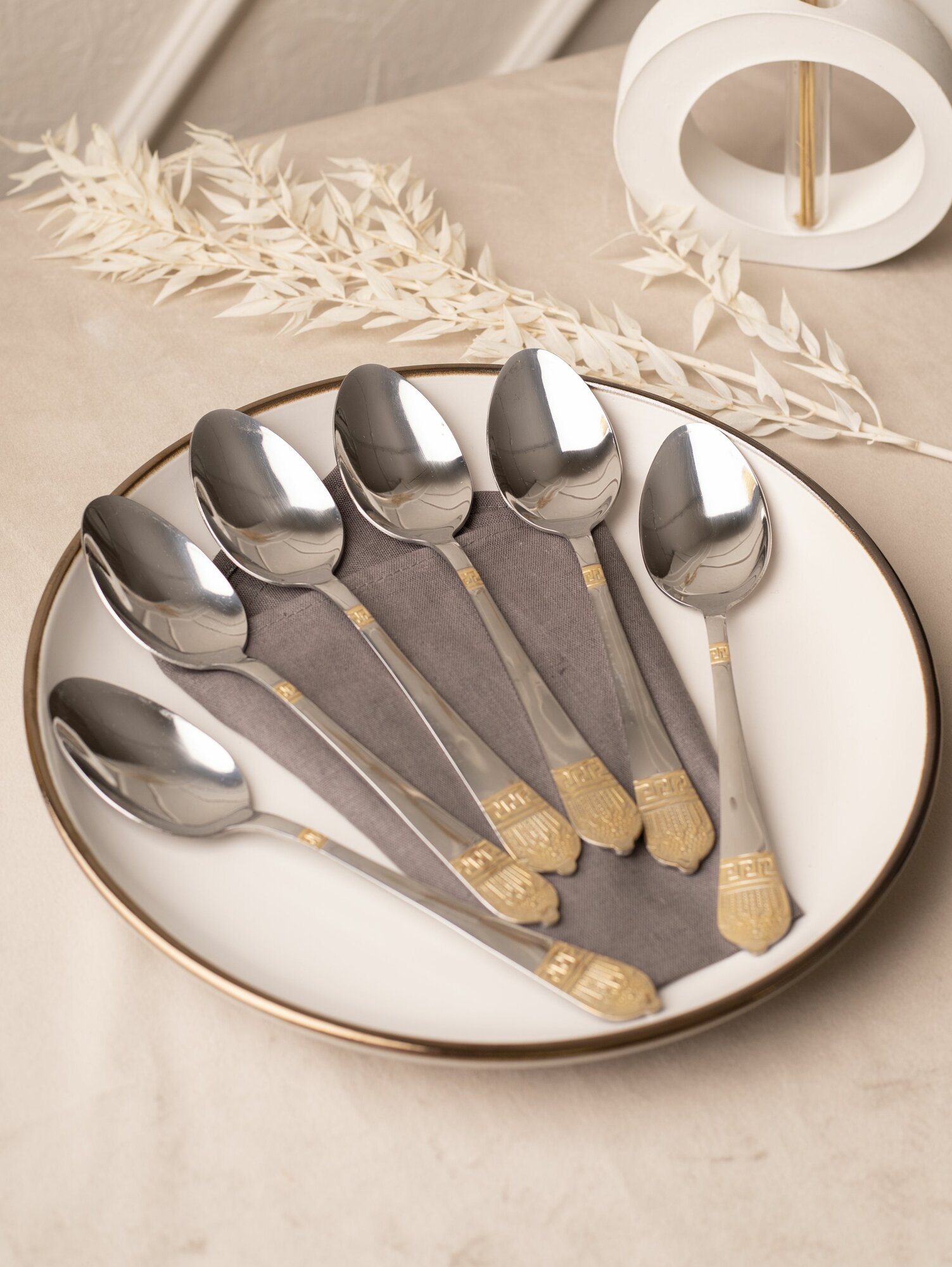 | В набор входит | Столовая ложка 6 предметов Столовая вилка 6 предметов Чайная ложка 6 предметов |