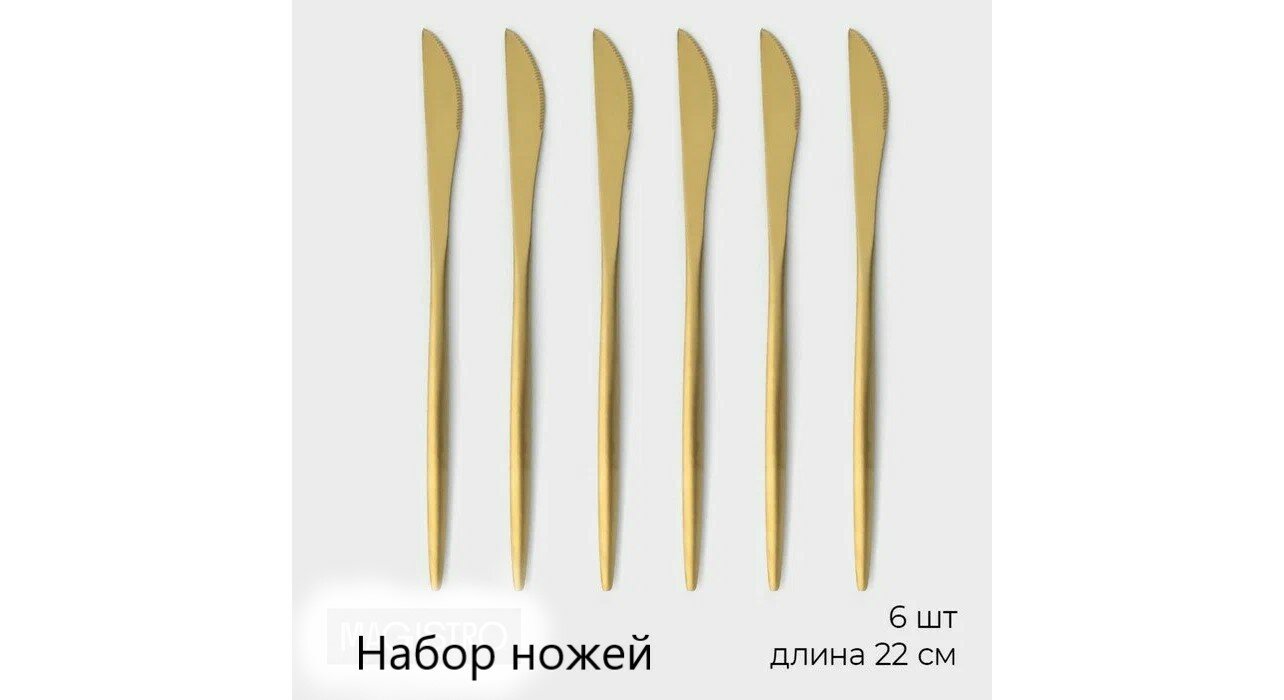 Набор столовых ножей "6 шт", длина 22см, золото интересное: