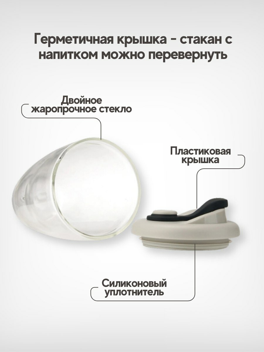 Термокружка с крышкой, термостакан для кофе, непроливайка, стакан стеклянный с двойными стенками для холодных и горячих напитков 350мл розовый носик