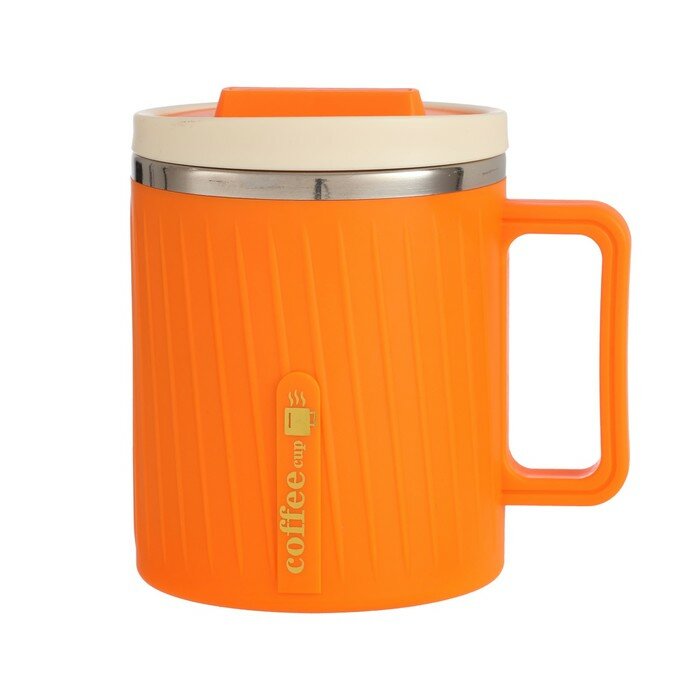 Термокружка, 440 мл, Путешествие, сохраняет тепло до 6 ч, оранжевая