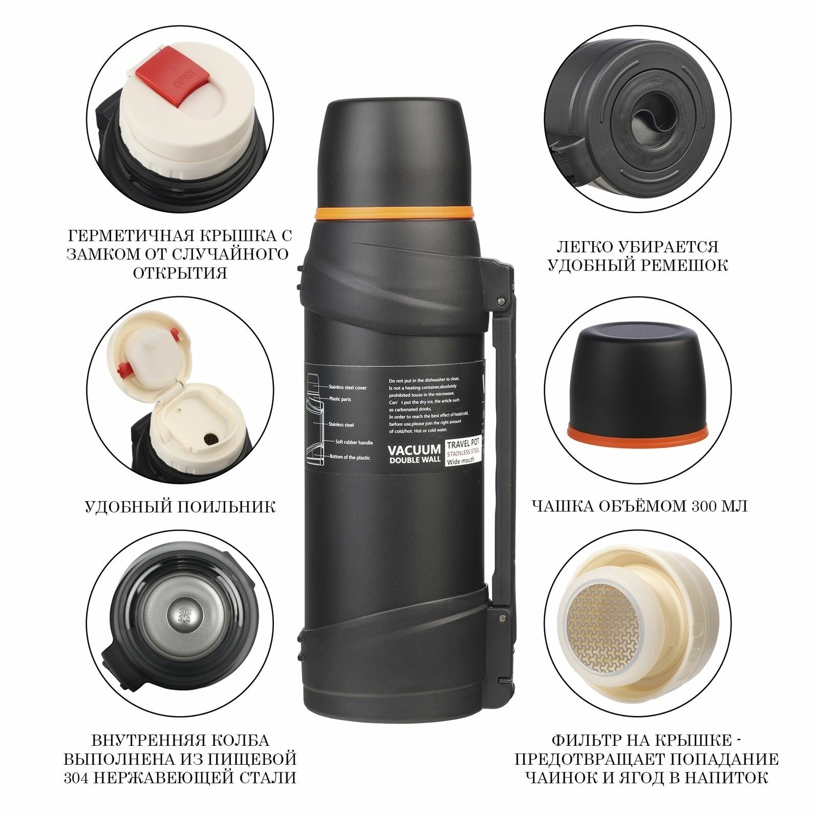Термос для еды, 1.5 л, сохраняет тепло до 12 ч, черный
