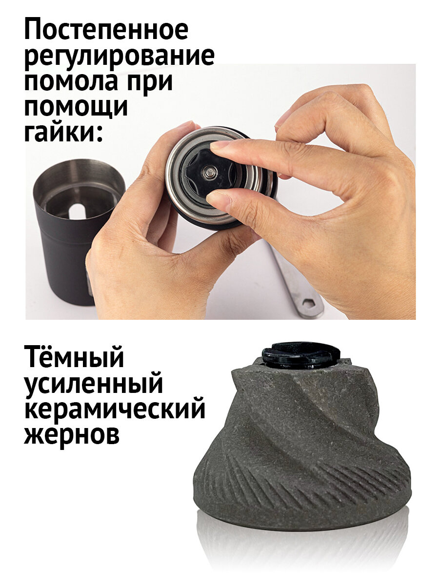Купить Ручная кофемолка чёрная с деревянной ручкой и керамическими жерновами