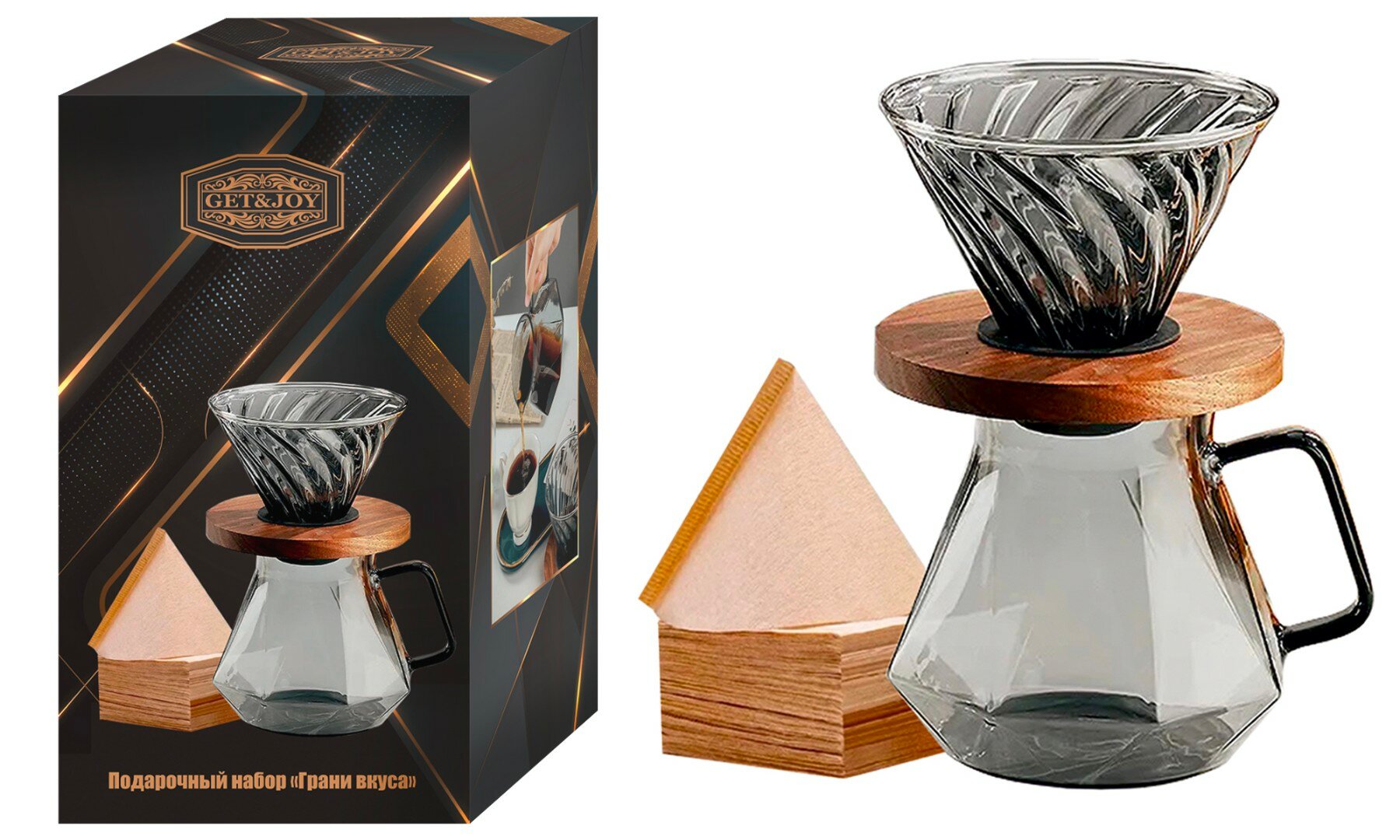 Набор для приготовления кофе - Пуровер, Грани Вкуса, стекло, дерево. интересное:
