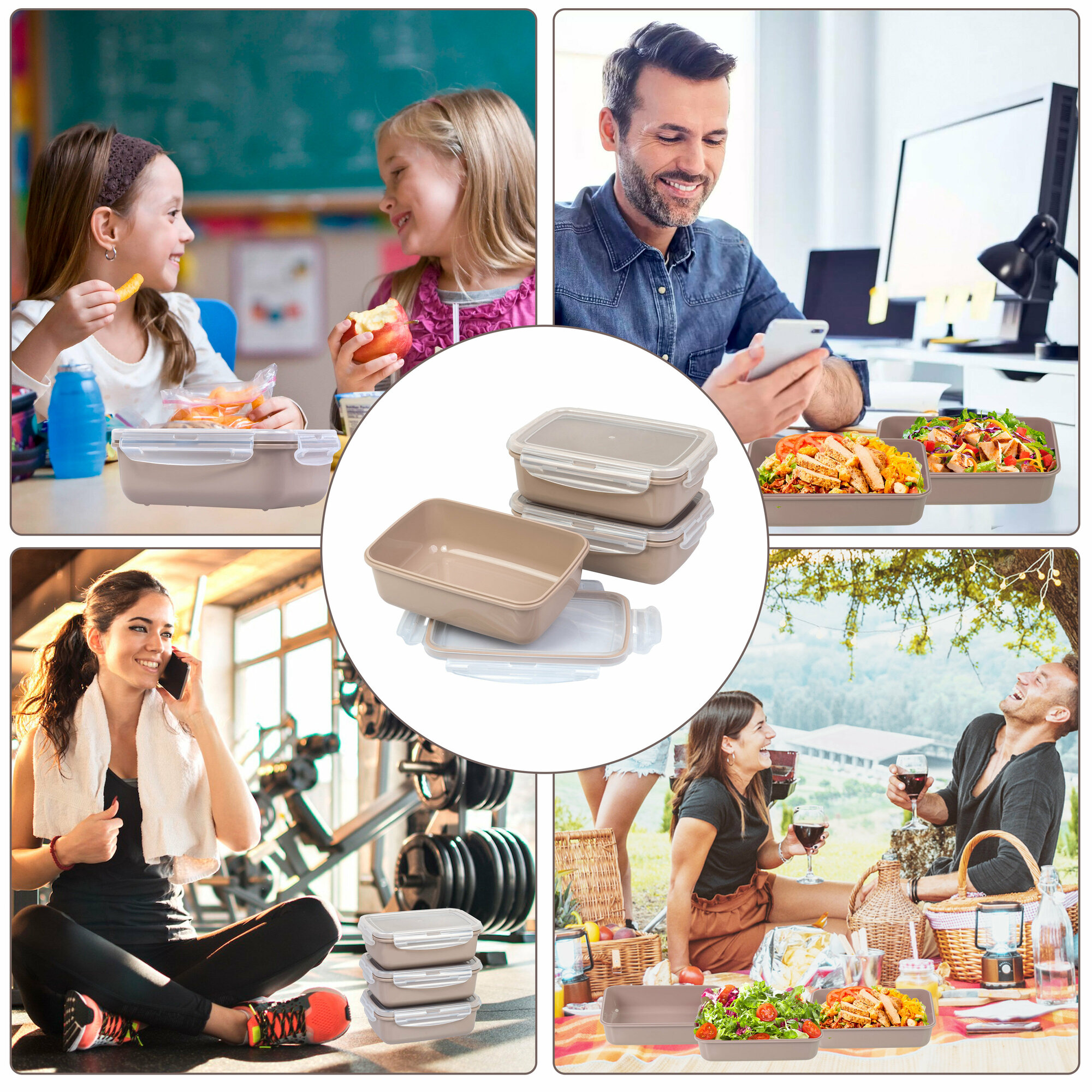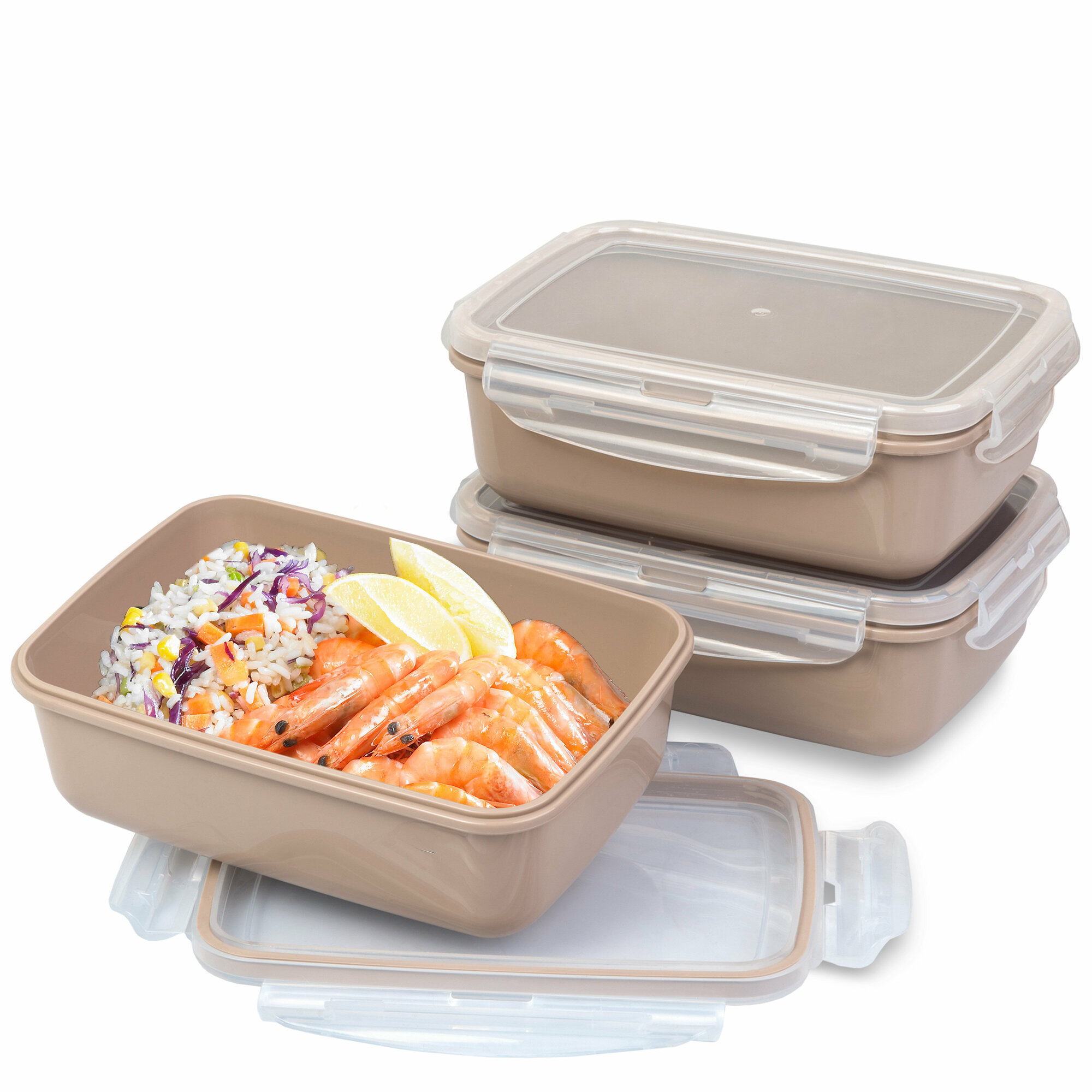 Купить FSYA045 Контейнеры для еды YUDELI 800 мл, 3 шт, цвет капучино, герметичные ланч-боксы с крышками на защелках