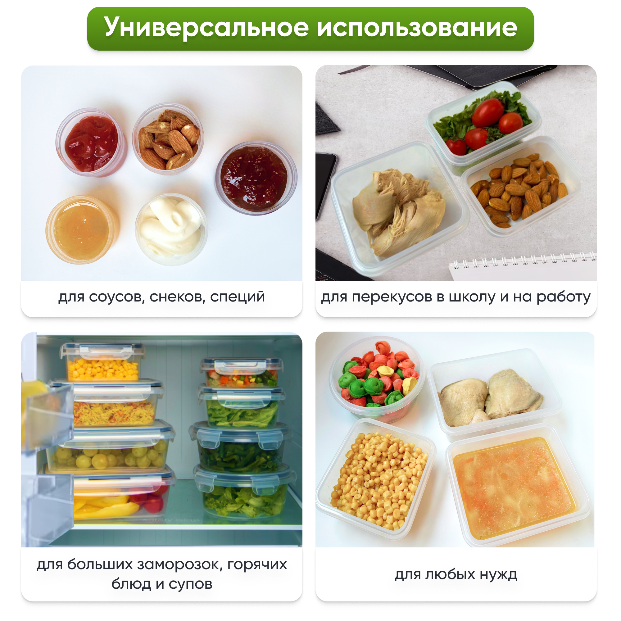 | Особенности | использование для заморозки / можно использовать в свч / можно мыть в посудомоечной машине / с крышкой |