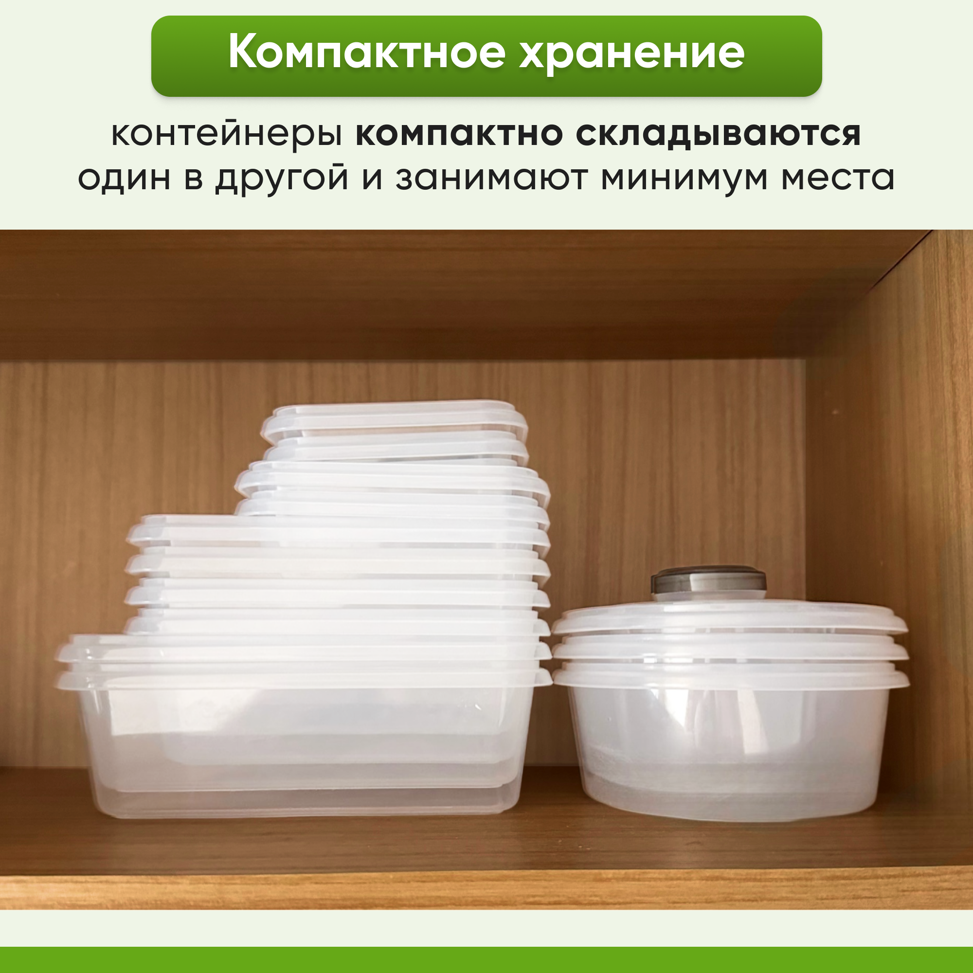 | Комплектация | Набор контейнеров с герметичными крышками (24 шт): - квадратный контейнер 976 мл - 2 шт; - квадратный контейнер 828 мл - 3 шт; - круглый контейнер 680 мл - 2 шт; - квадратный контейнер 532 мл - 2 шт; - квадратный контейнер 325 мл - 3 шт; - квадратный контейнер 296 мл - 2 шт; - круглый контейнер 296 мл - 2 шт; - круглый контейнер 30 мл - 8 шт - наклейки для контейнеров - 24 шт; - маркер - 1 шт. |
