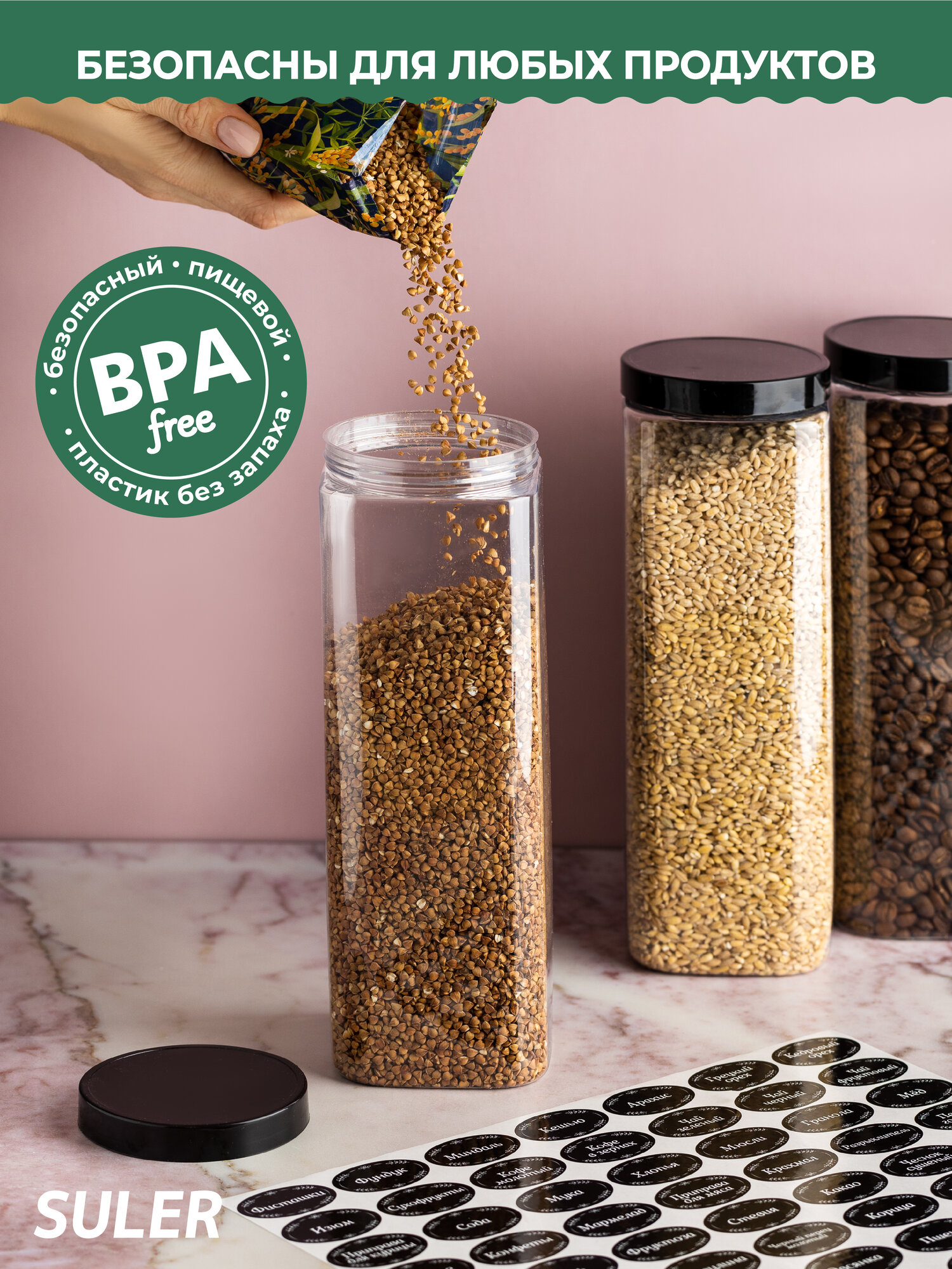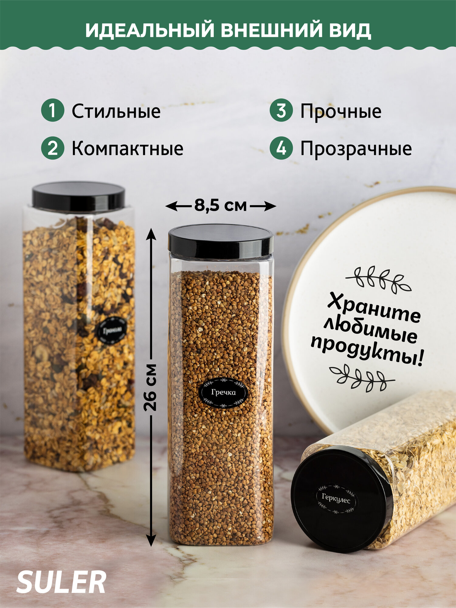 Банки для круп Suler 1,5 литра 8 штук интересное: