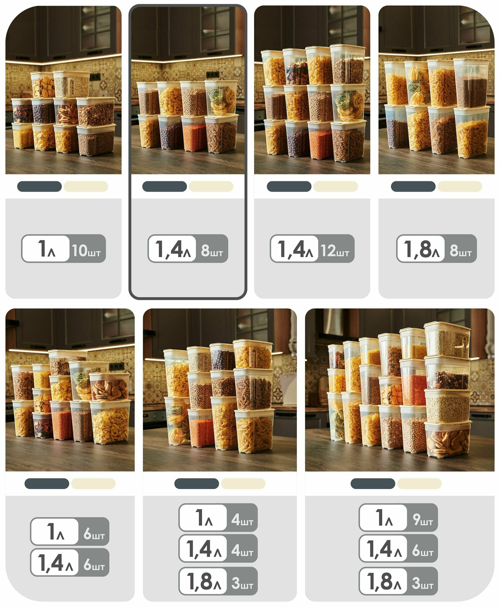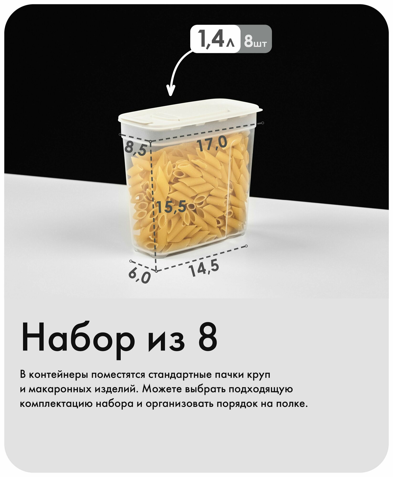 Купить Набор контейнеров для сыпучих продуктов №5 (1,4лх8шт) (слоновая кость)