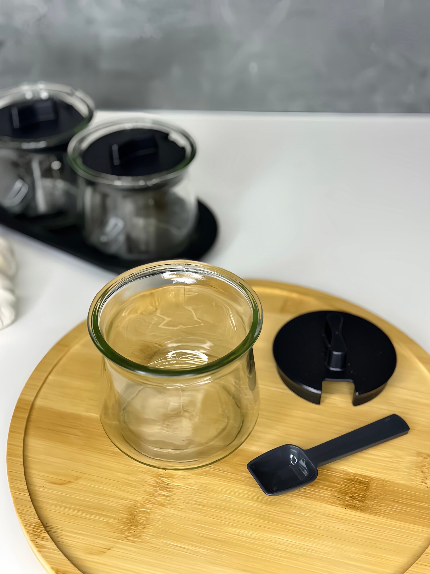 | Комплектация | Банка с ложкой 3 шт, подставка |