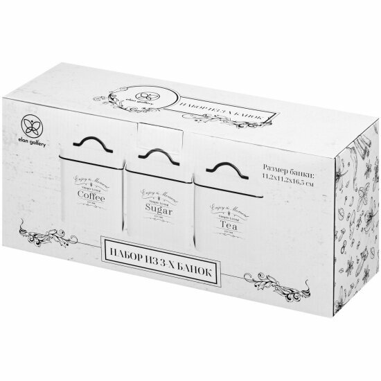 Купить Банка для хранения сыпучих продуктов/ чая, кофе, сахара 3 шт 1,5 л Elan Gallery "Tea, coffee, sugar", крышки с ручками, квадрат, набор