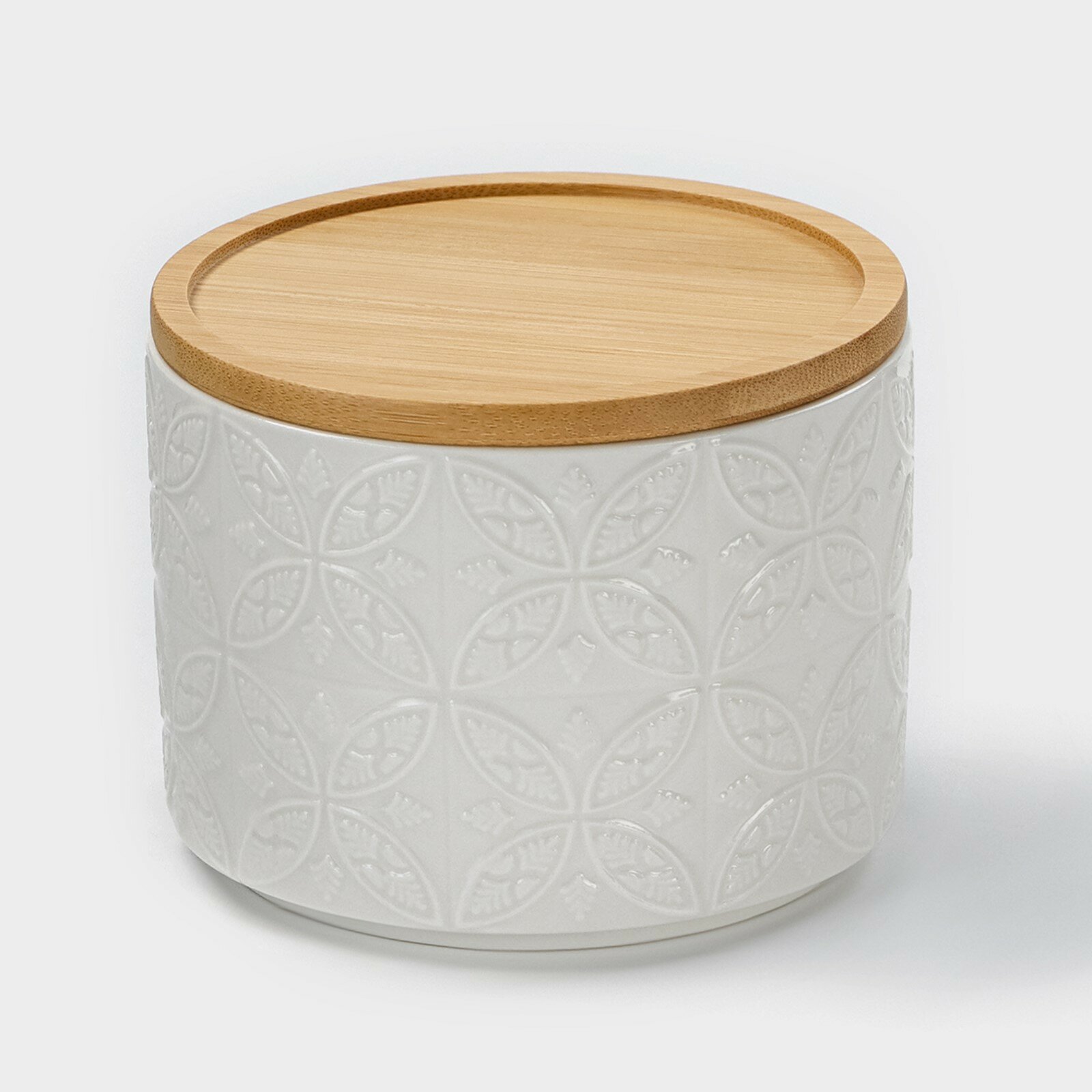 Купить Банка фарфоровая для сыпучих продуктов BellaTenero «Листья», 330 мл, d=10 см, цвет белый