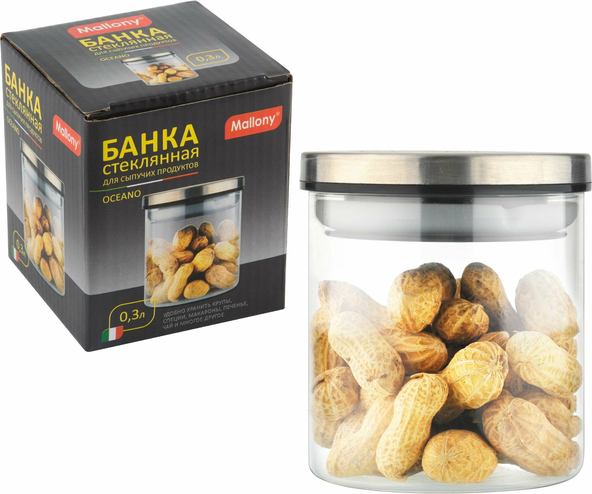 Стеклянная банка для сыпучих продуктов Mallony Oceano, крышка из нержавеющей стали, 0.3 л