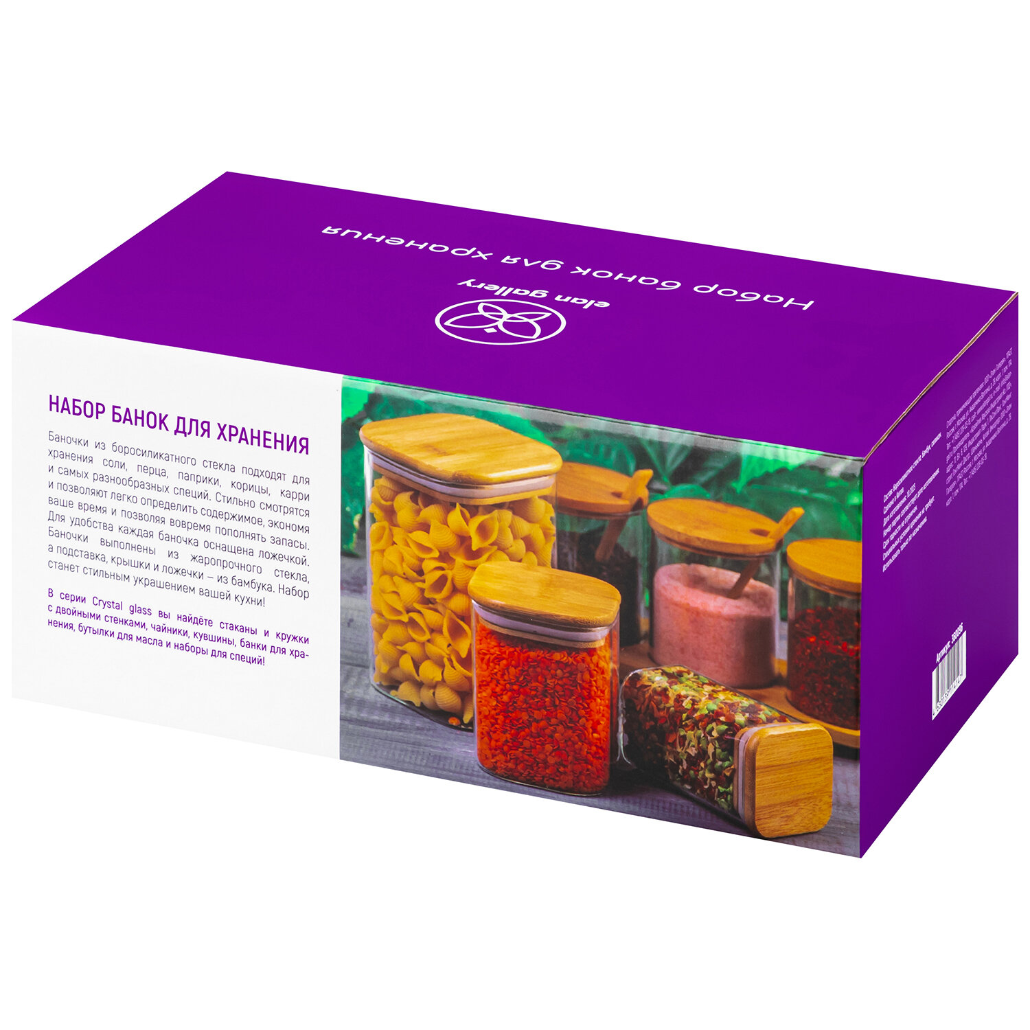 | Комплектация | Набор 7 банок для хранения 3 предмета по 450 мл и 4 предмета по 250 мл Elan Gallery Crystal glass |