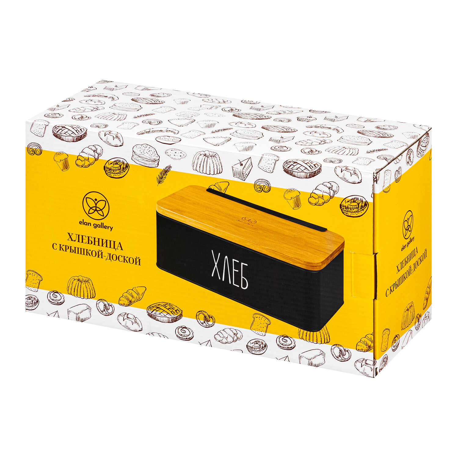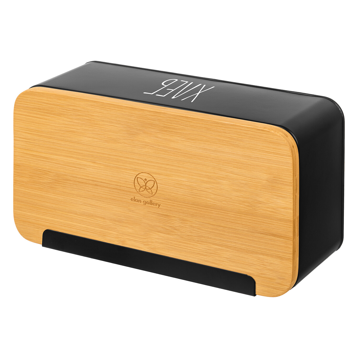 Купить Хлебница 33х18х13 см Elan Gallery Черная, с бамбуковой крышкой-доской, с надписью