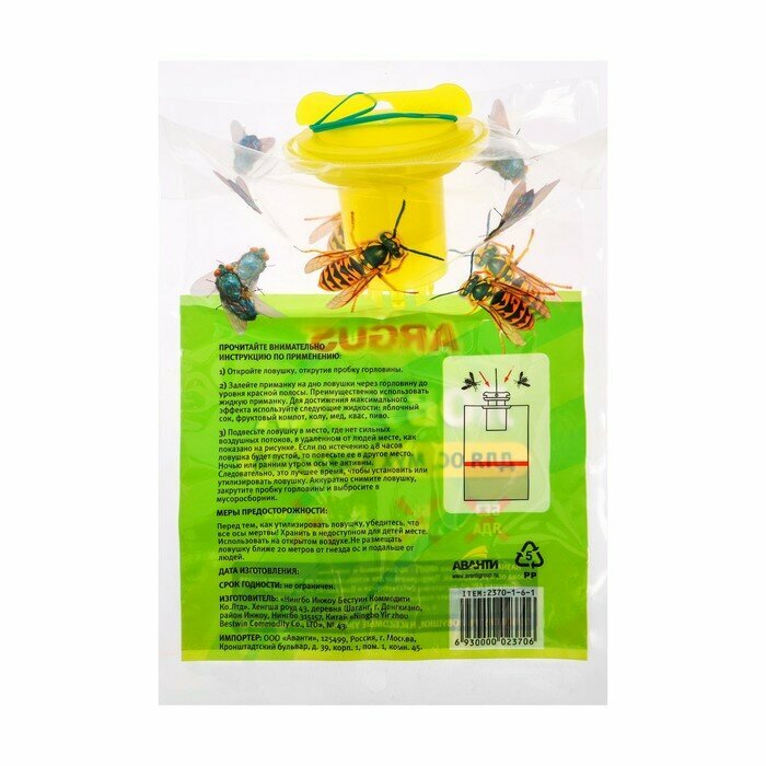 ARGUS GARDEN ловушка от ОС и мух 1шт (пакет) интересное: