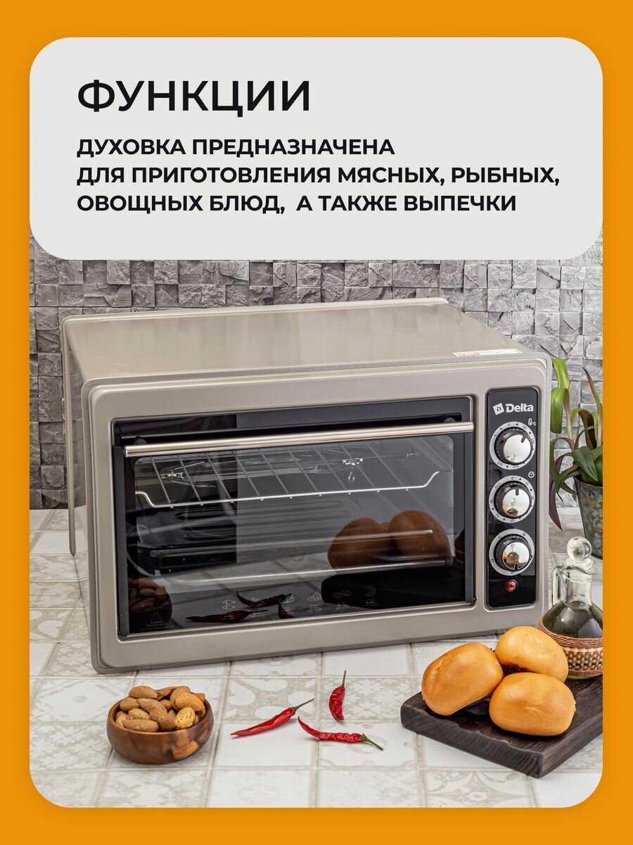 Духовка электрическая 37Л 1300ВТ 4 РЕЖ РАБ тайм 90МИН 2 ТЭНА повыш мощн гриль DELTA