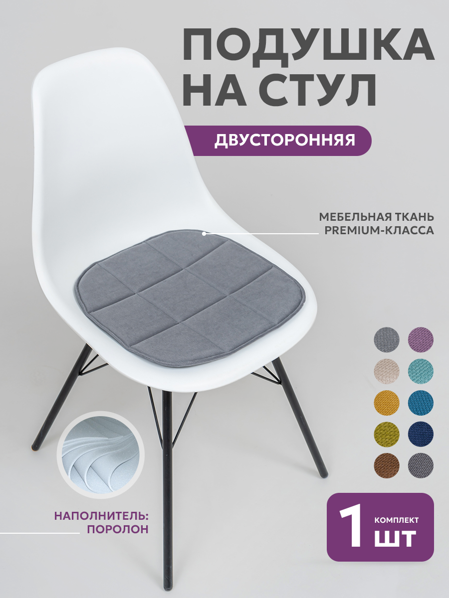 Купить Подушка на стул икеа Bio-Line,сидушка 2 сторонняя,кабрио,39*40 см/светло-серая