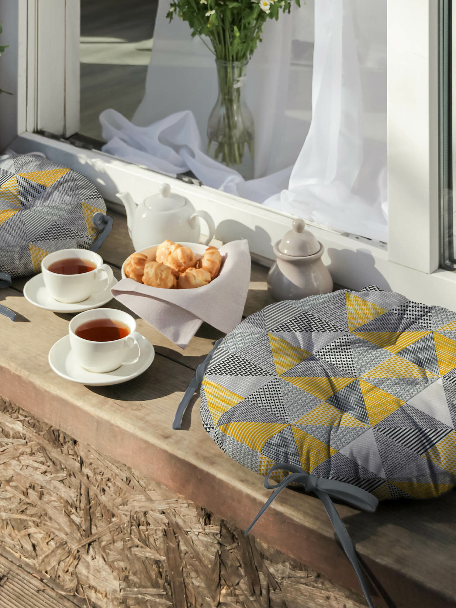 Комплект подушек на стул с тафтингом квадратных 40х40 (2 шт) "Унисон" рис 30004-16 Basic желтый
