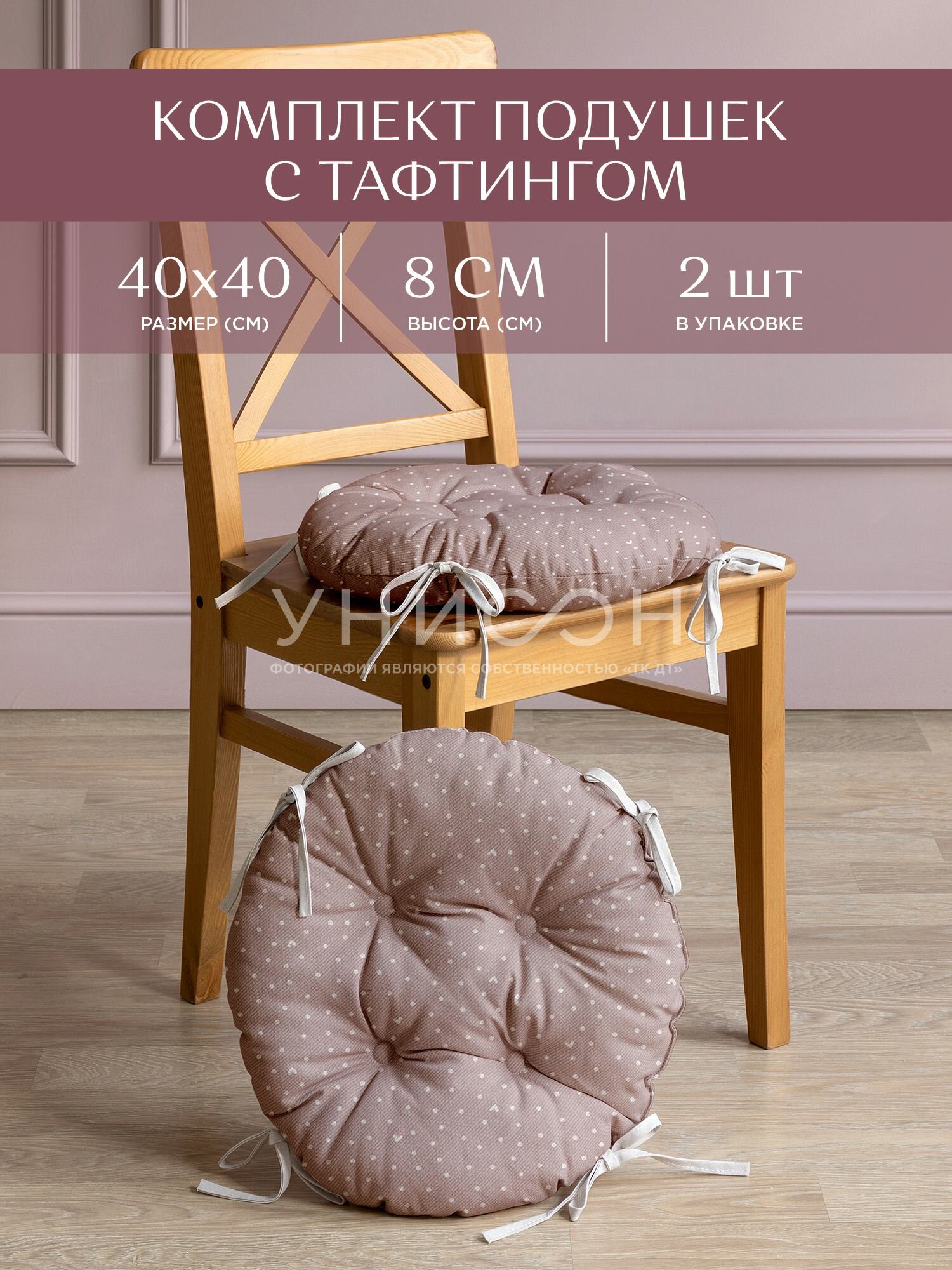 СохранитьКомплект подушек на стул с тафтингом круглых d40 (2 шт) "Унисон" рис 33002-1 Love интересное: