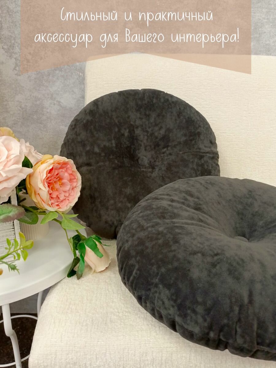 СохранитьПодушка круглая 40х40 см темно-серая с пуговицей интересное: