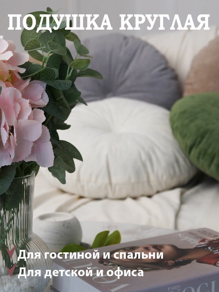 Подушка круглая 40х40 см бежевая