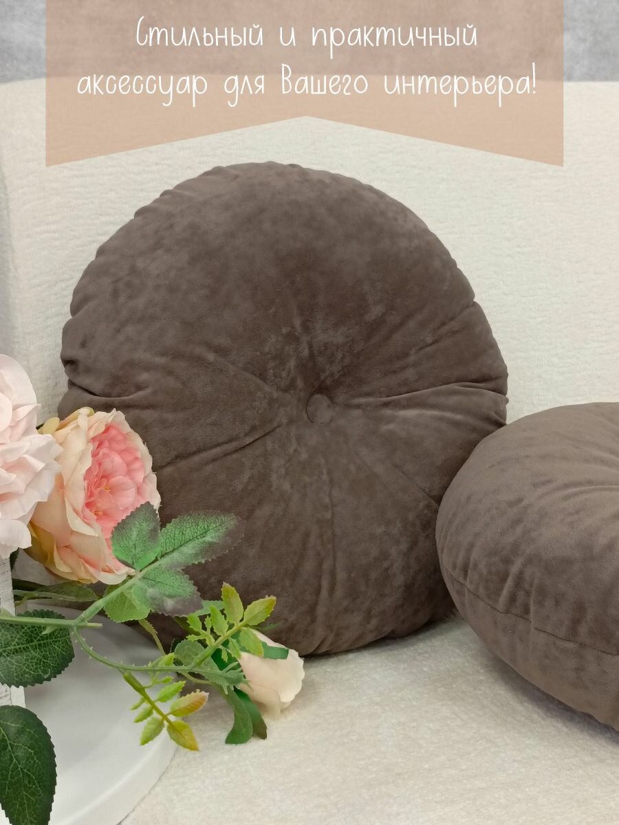 СохранитьПодушка круглая 40х40 см кофейная с пуговицей интересное: