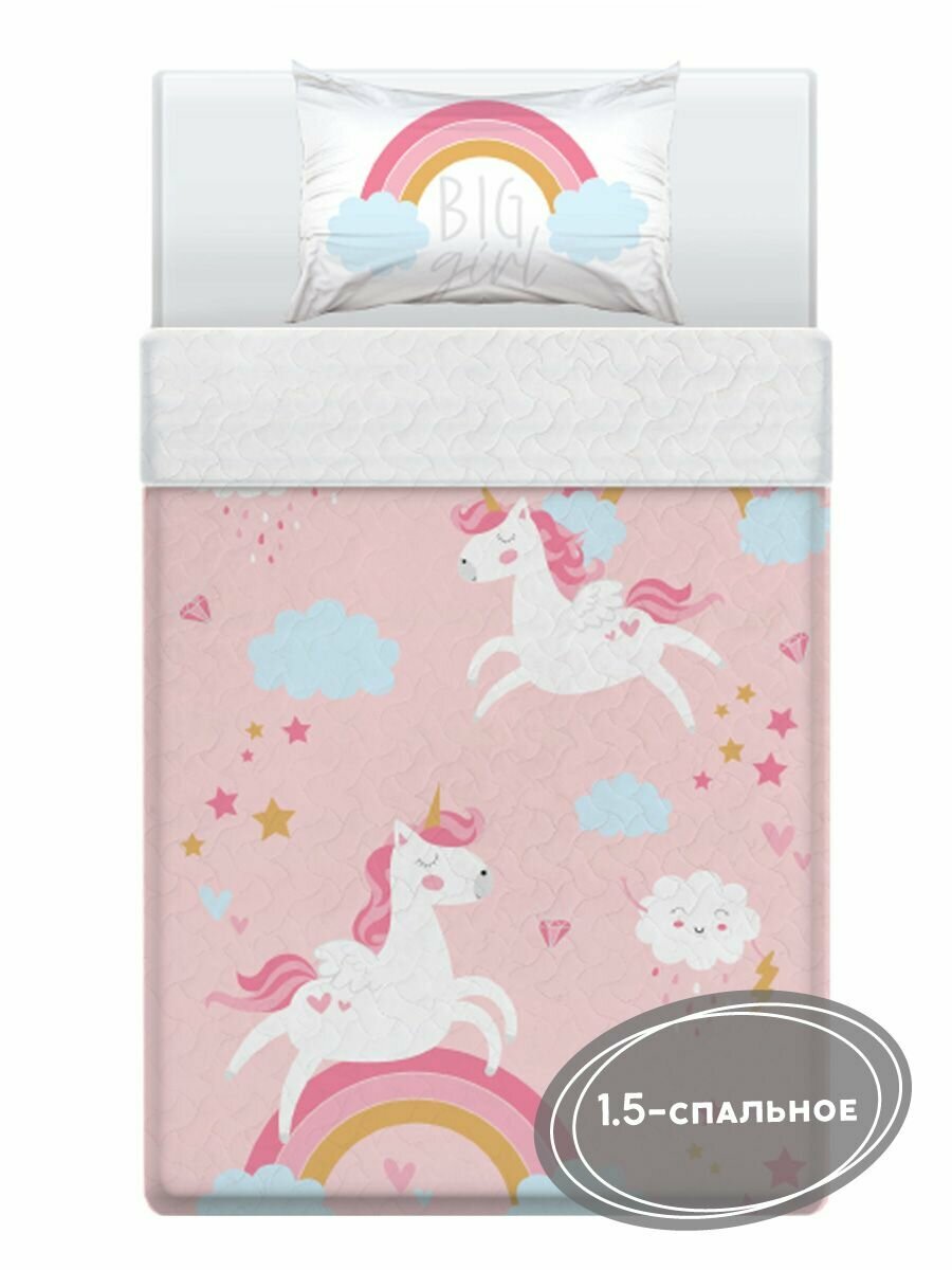 Купить Покрывало детское и наволочка Этель 1,5 сп "Pink unicorn", 145х210 см, 40х60 см, микрофибра