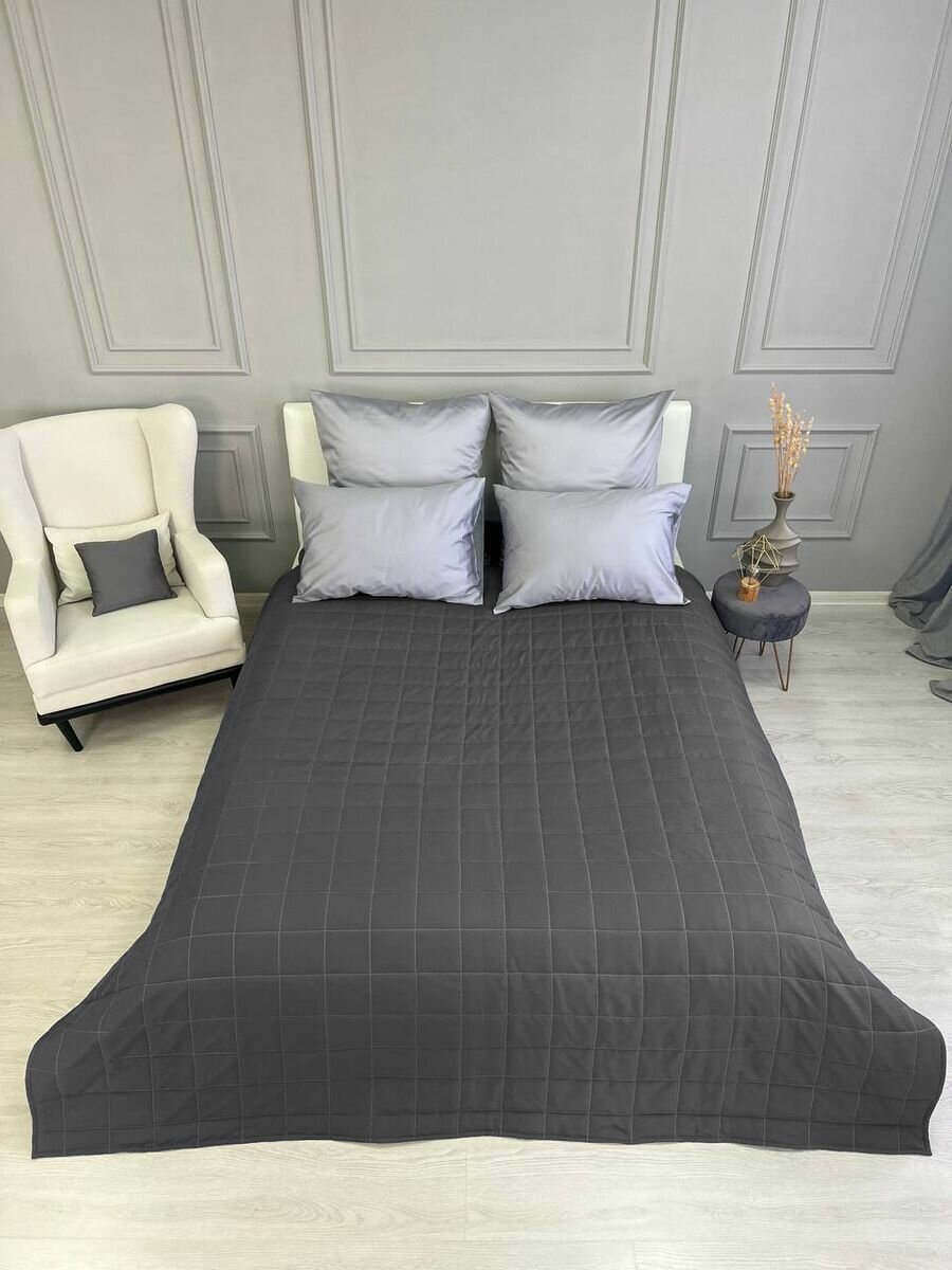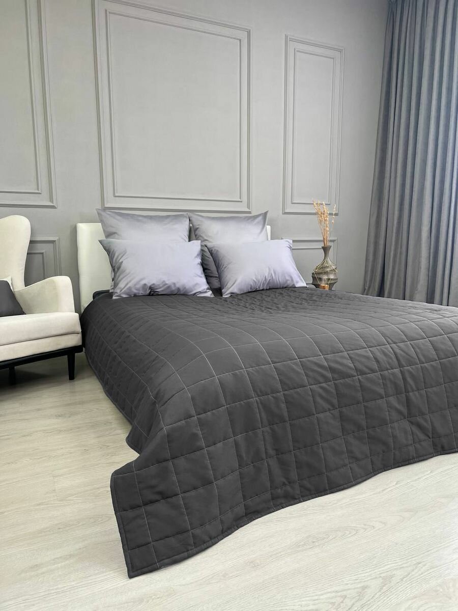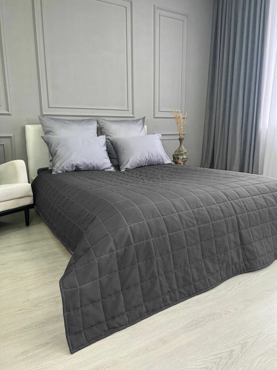Купить Покрывало на кровать и диван 210х240 см стеганое, графит, Ушки Подушки