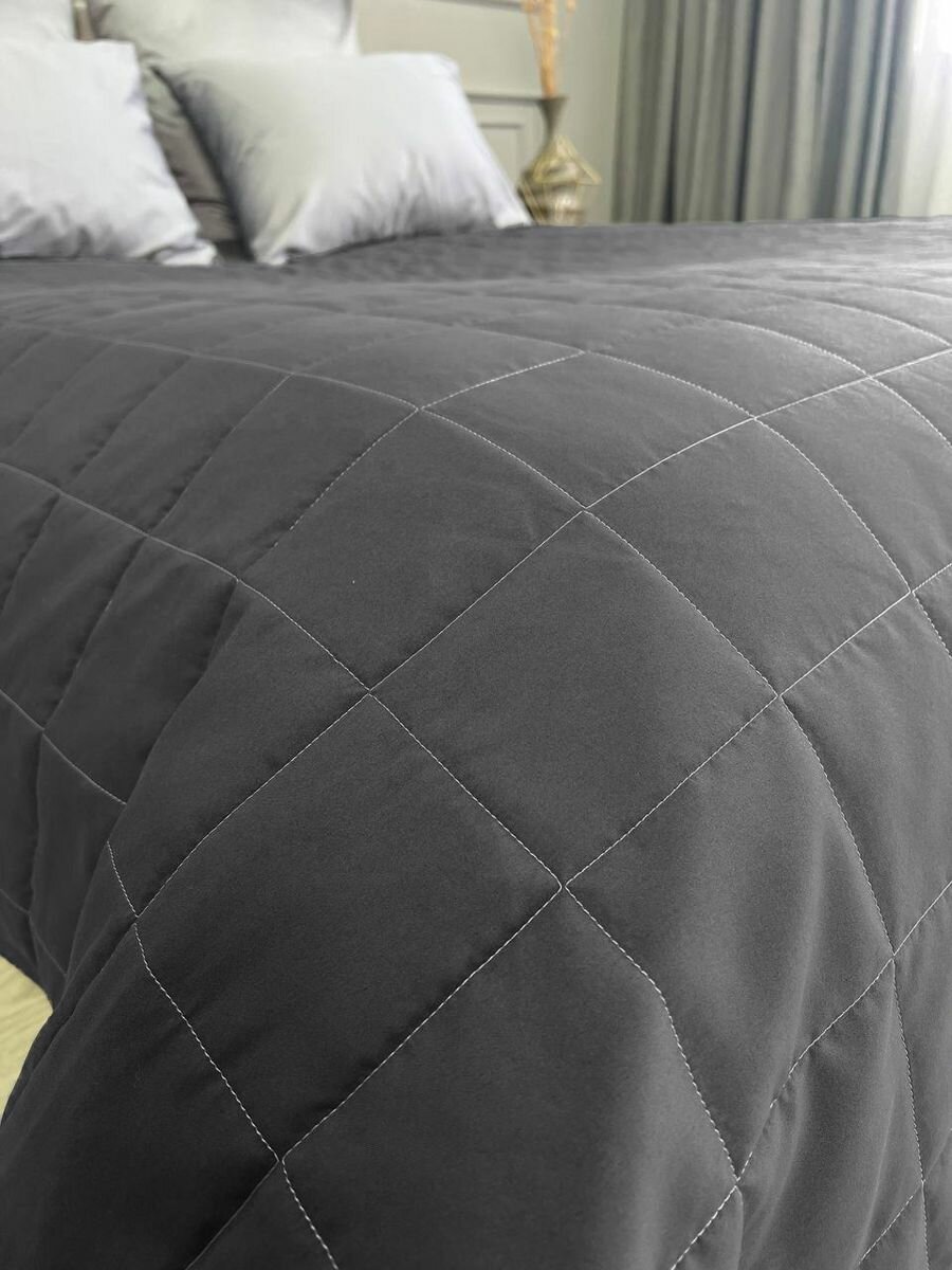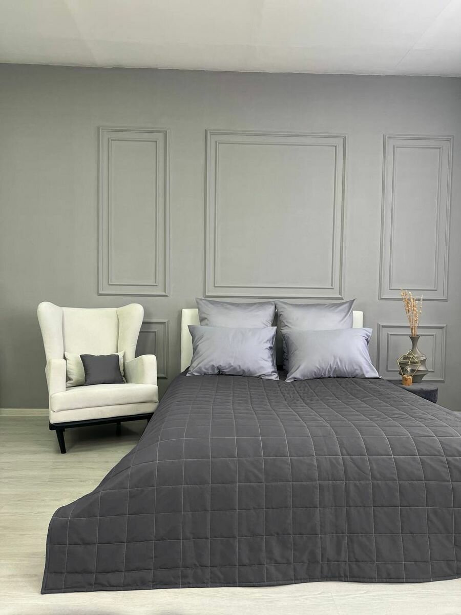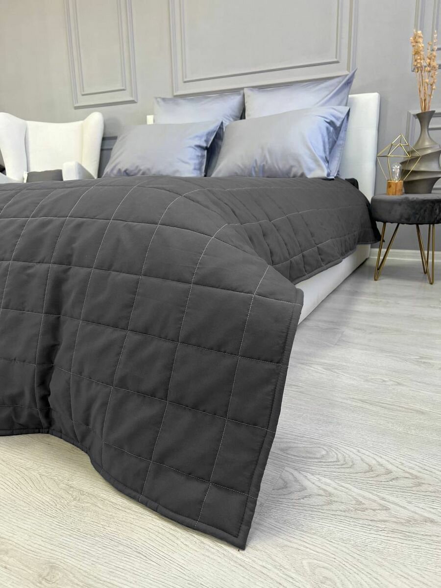 Купить Покрывало на кровать и диван 210х240 см стеганое, графит, Ушки Подушки
