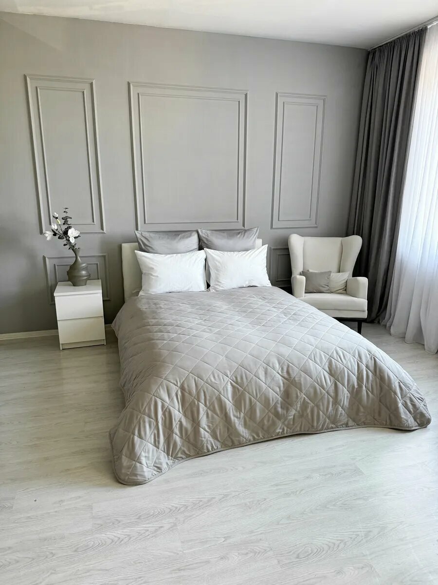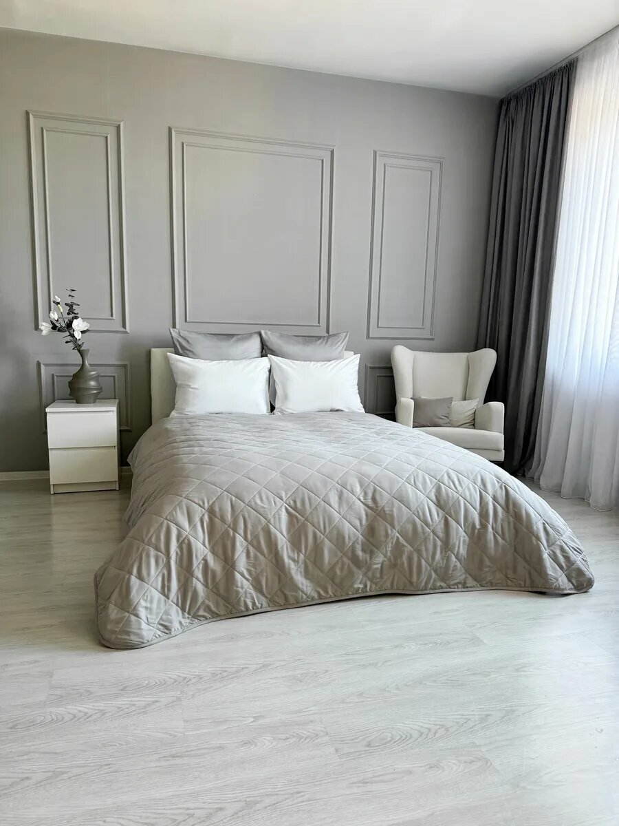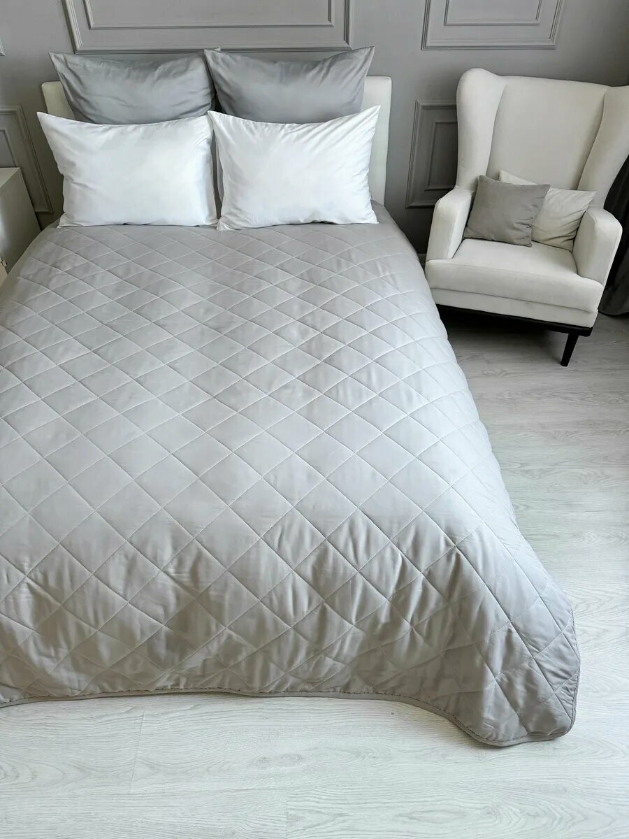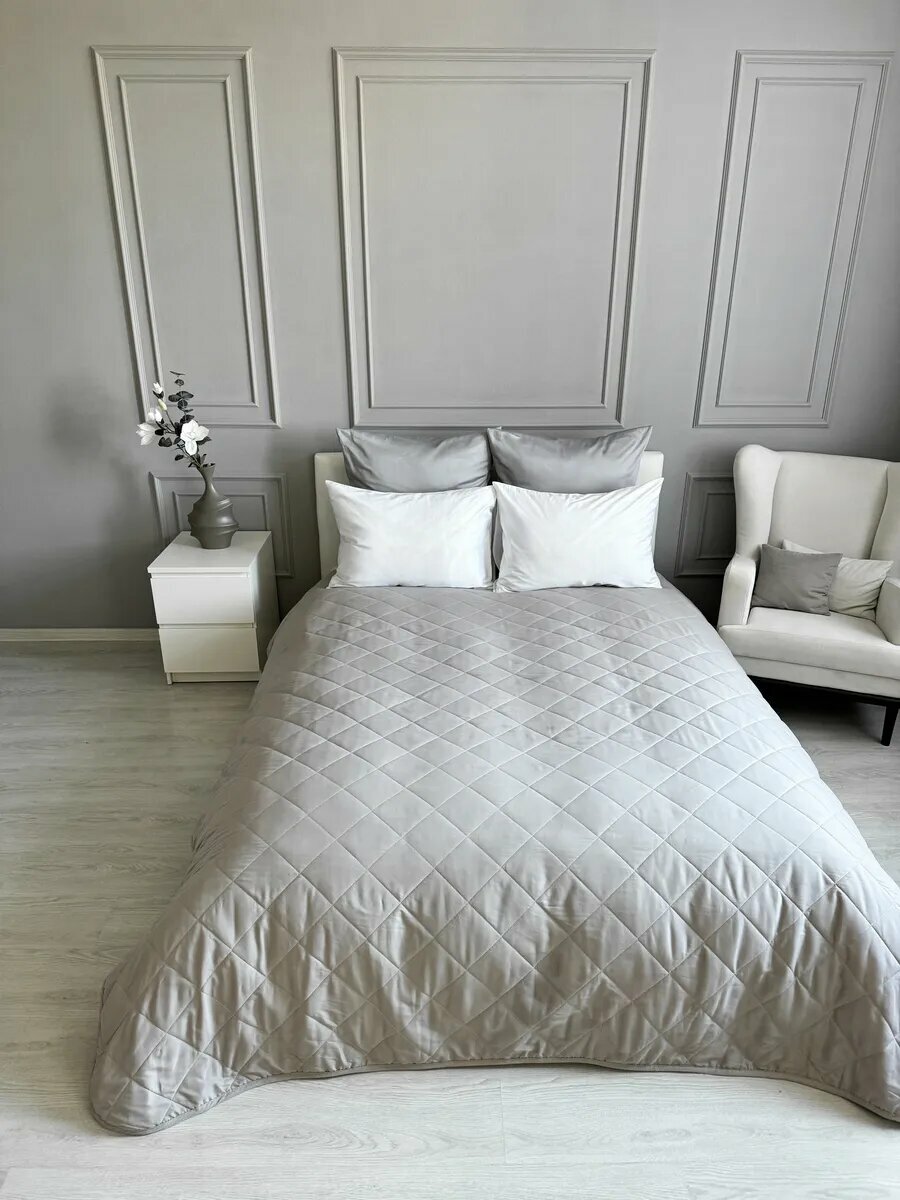 СохранитьПокрывало на кровать и диван 210х240 см стеганое, светло-серое, Ушки Подушки интересное: