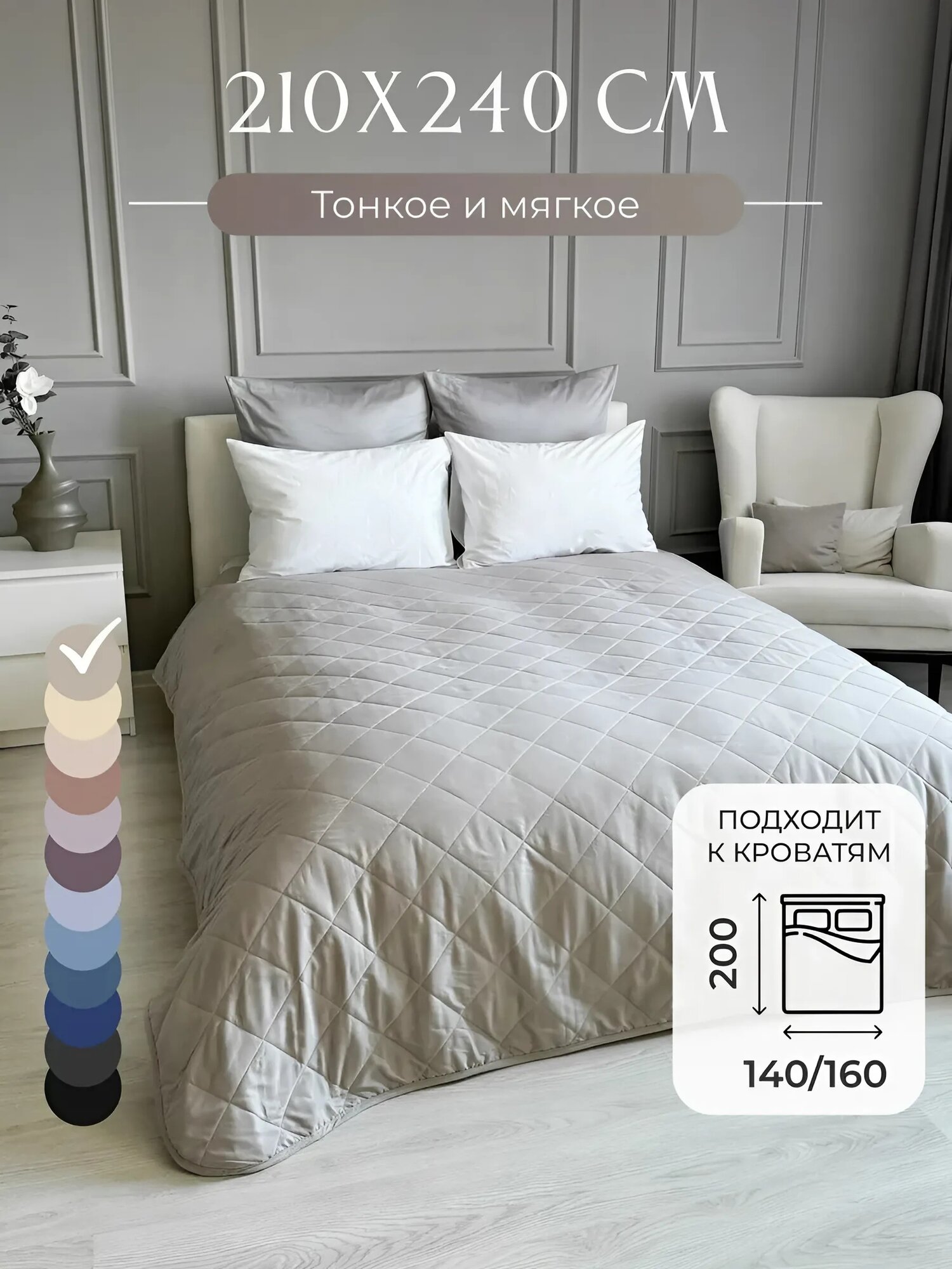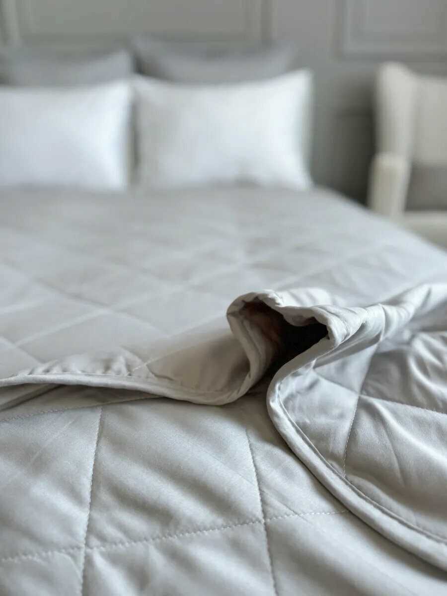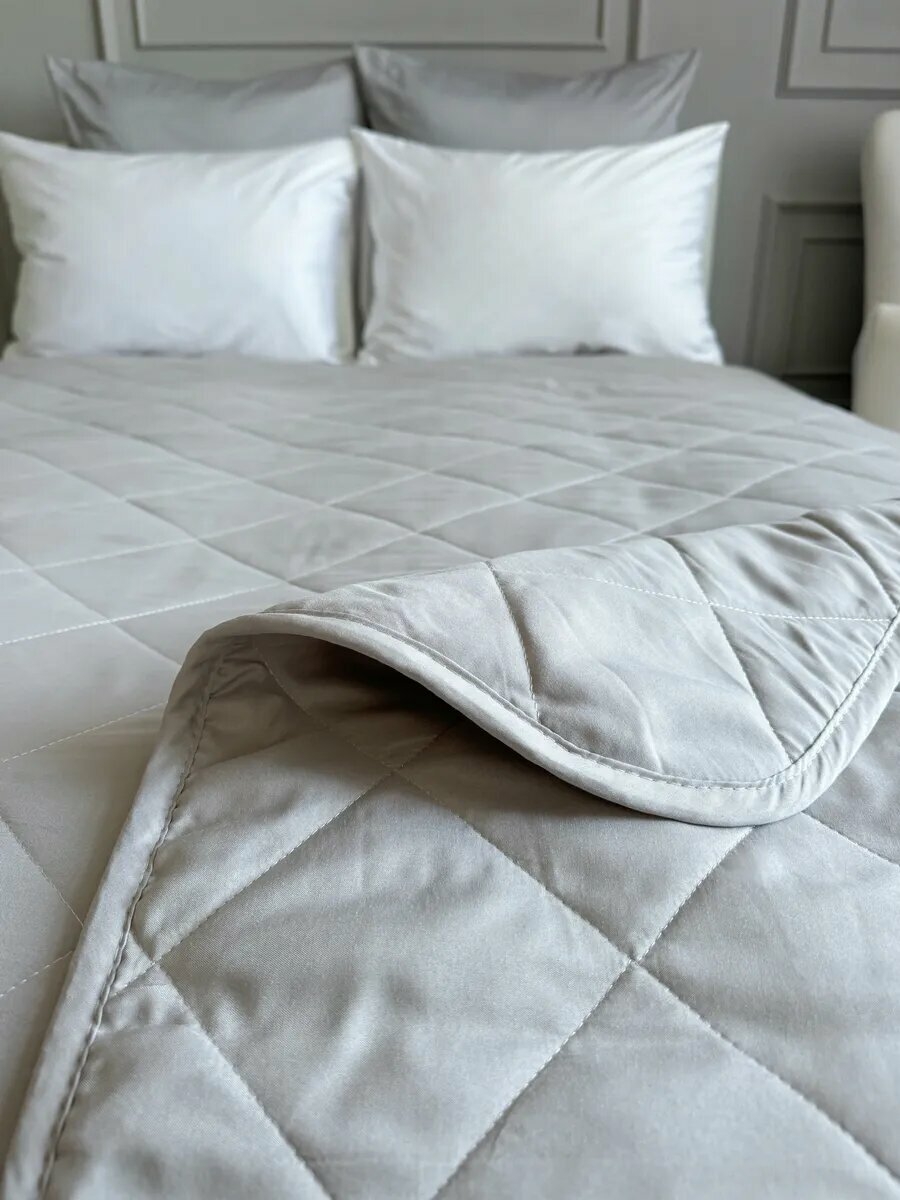 СохранитьПокрывало на кровать и диван 210х240 см стеганое, светло-серое, Ушки Подушки интересное: