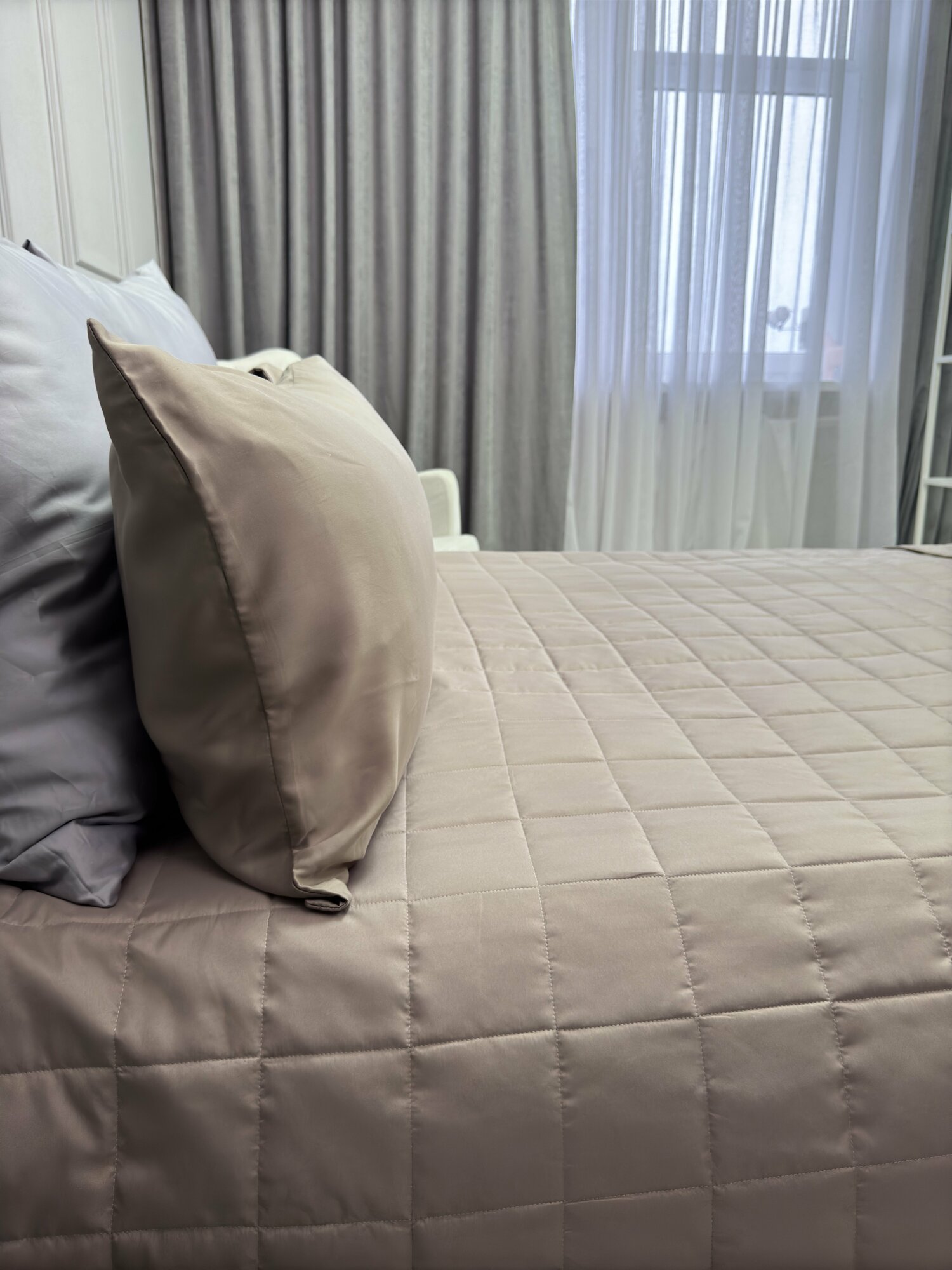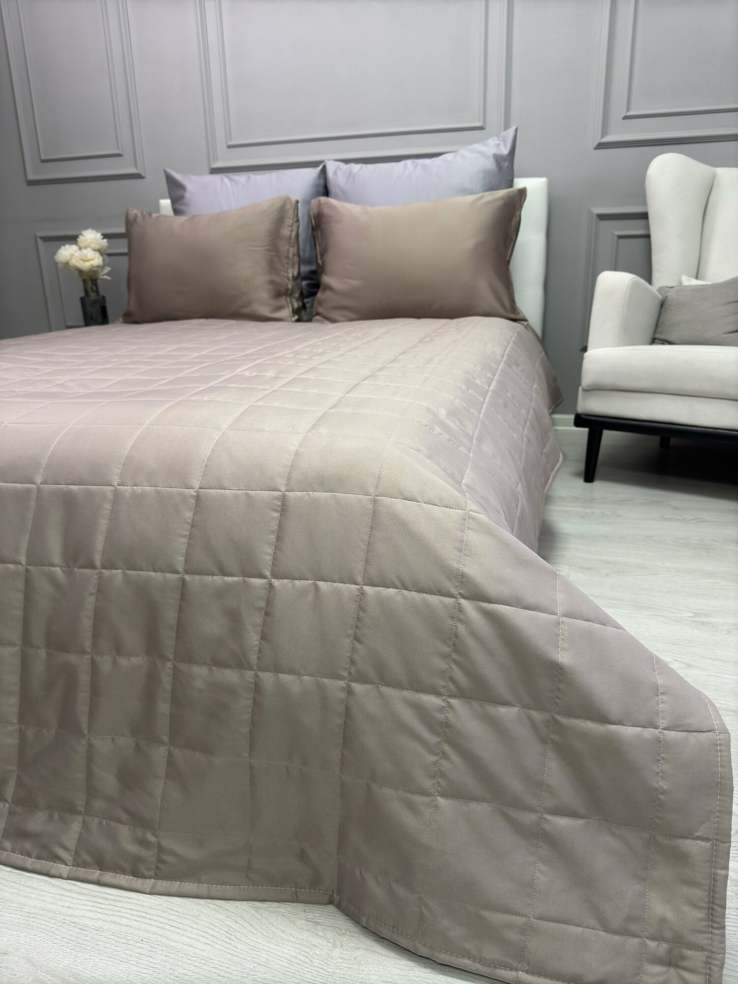 СохранитьПокрывало на кровать и диван 210х240 см стеганое, серо-коричневое, Ушки Подушки интересное: