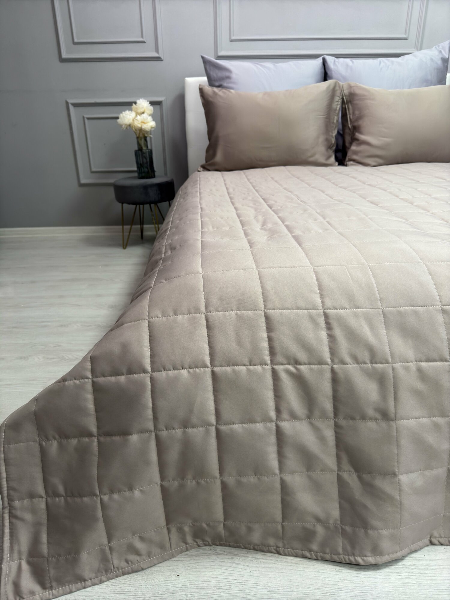 Купить Покрывало на кровать и диван 210х240 см стеганое, серо-коричневое, Ушки Подушки
