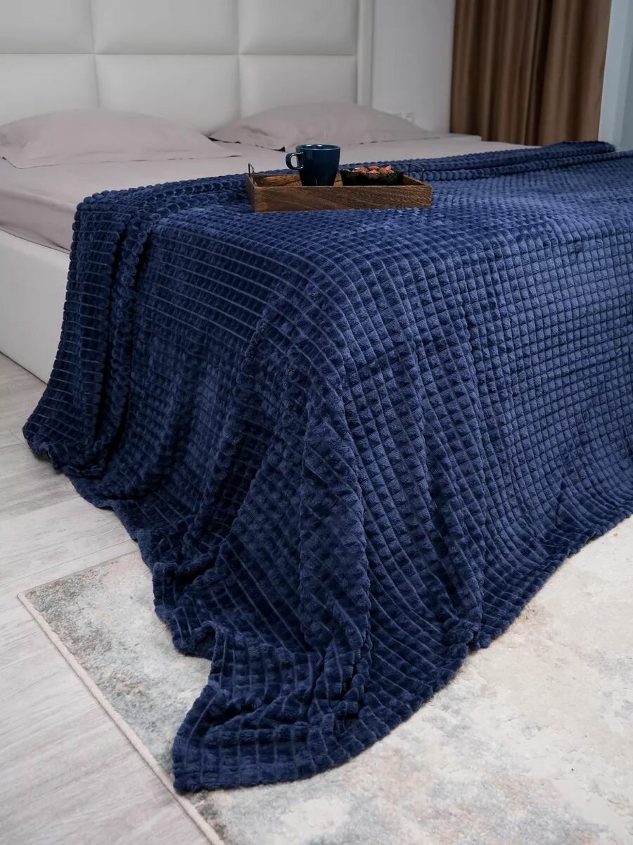 Плед темно синий плюшевый в кубик евро 200х220 см интересное: