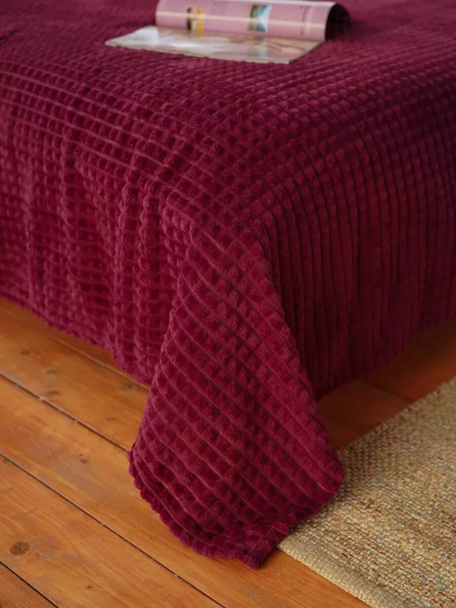 Плед бордовый плюшевый в кубик евро 200х220 см интересное: