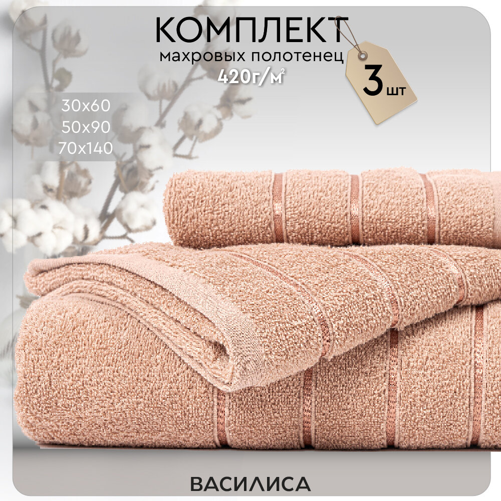 Набор махровых полотенец Василиса Флеш, 3 шт, 100% хлопок, Бежевый интересное: