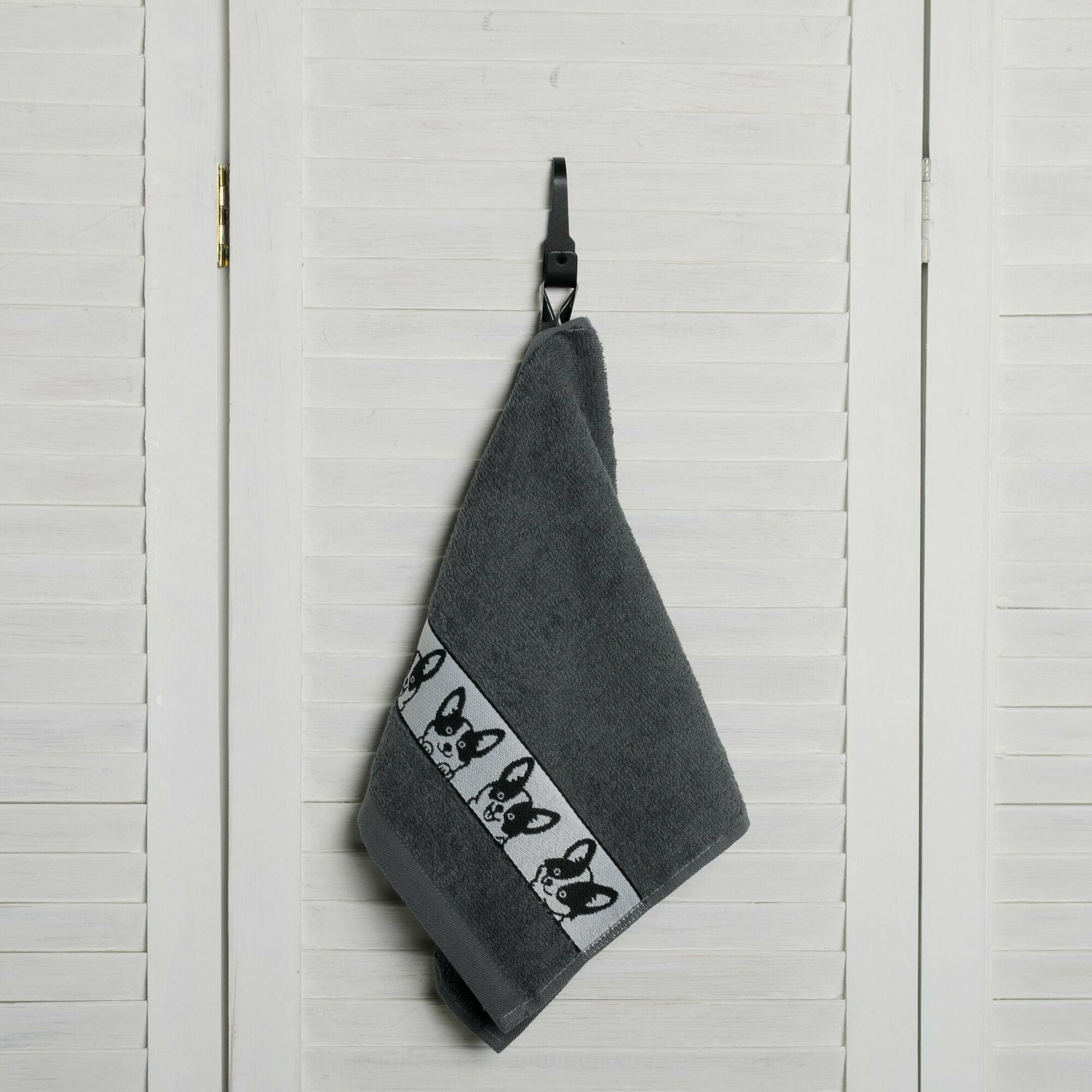 Купить Полотенца махровые кухонные, 30х60 см, набор 5 шт, с петелькой, Casa Conforte Китчен Собачки, темно-серые
