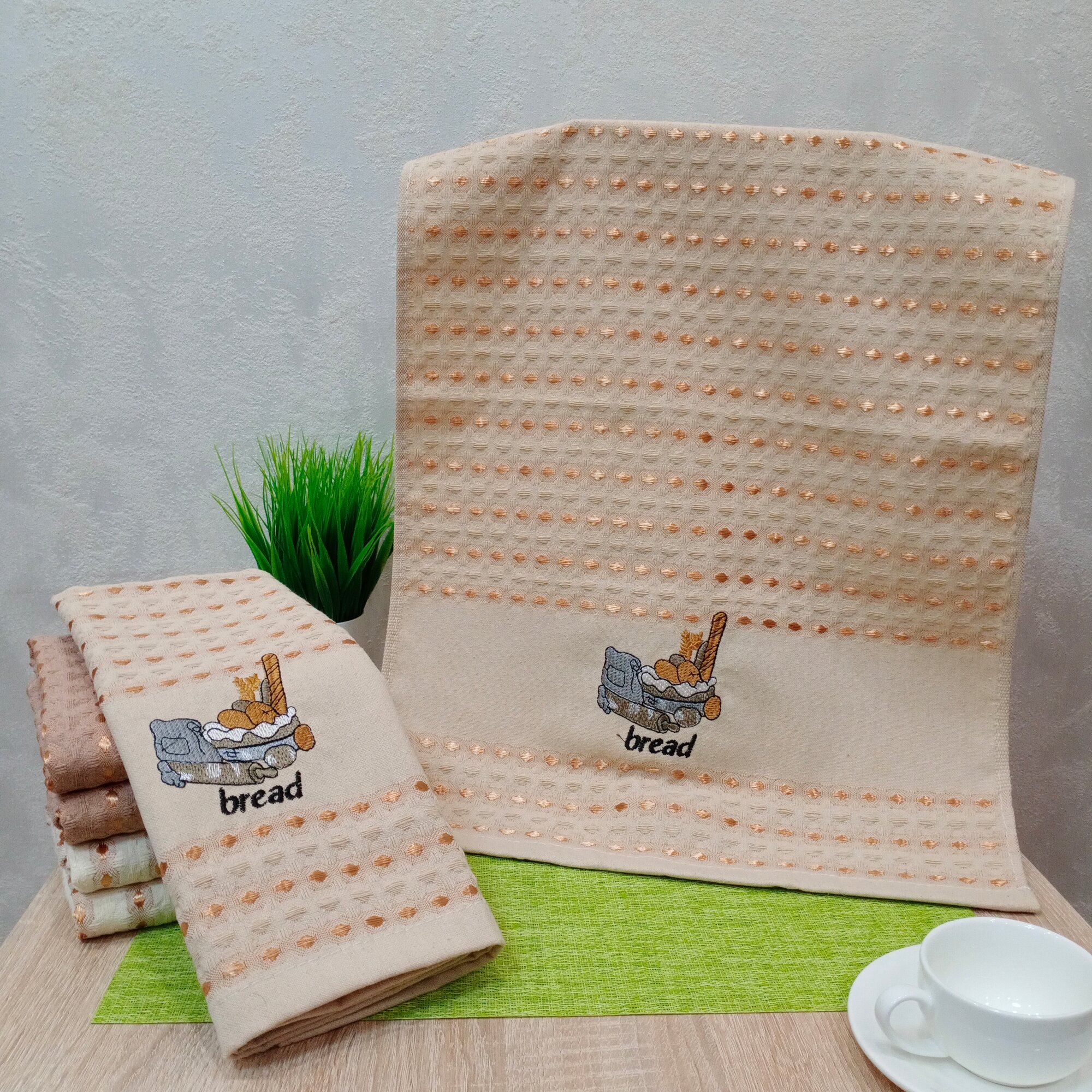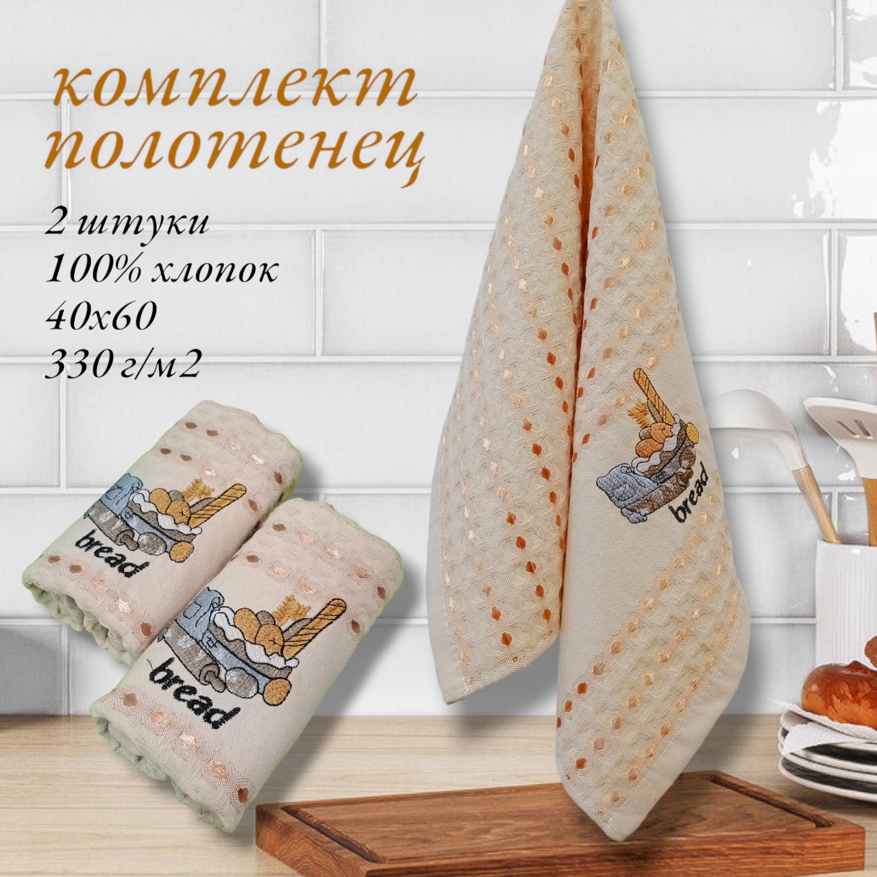 Полотенца кухонные, вафельные 40*60см, 2шт, 330гр/м², бежевые интересное: