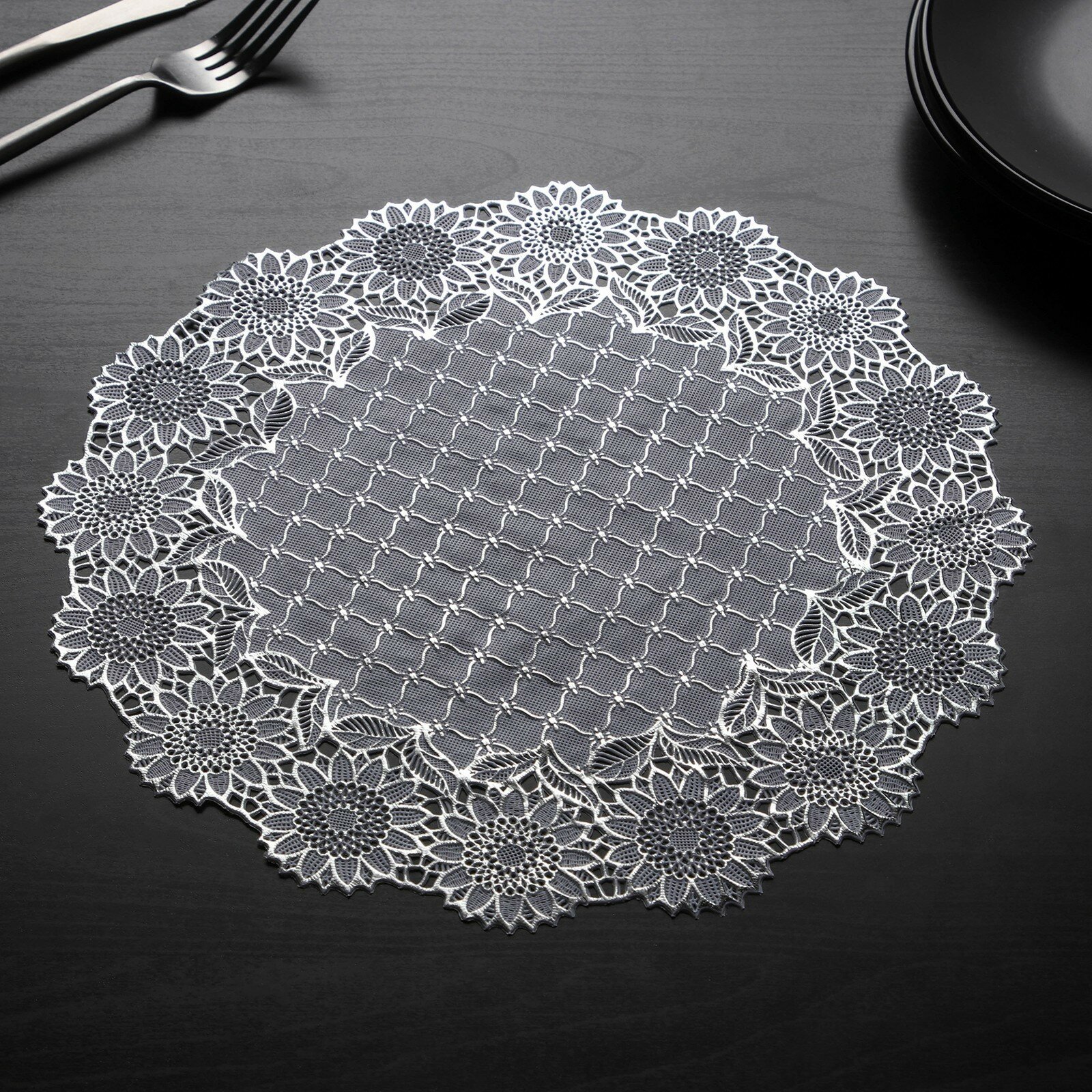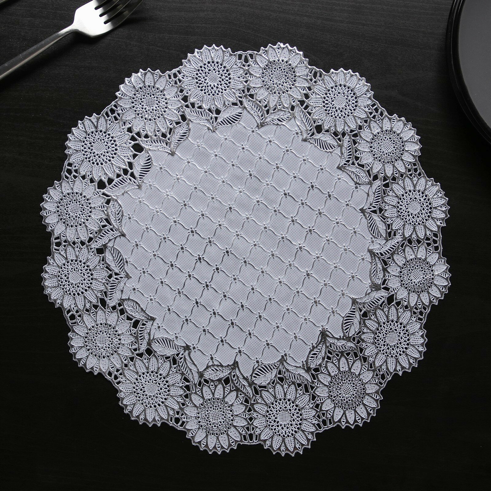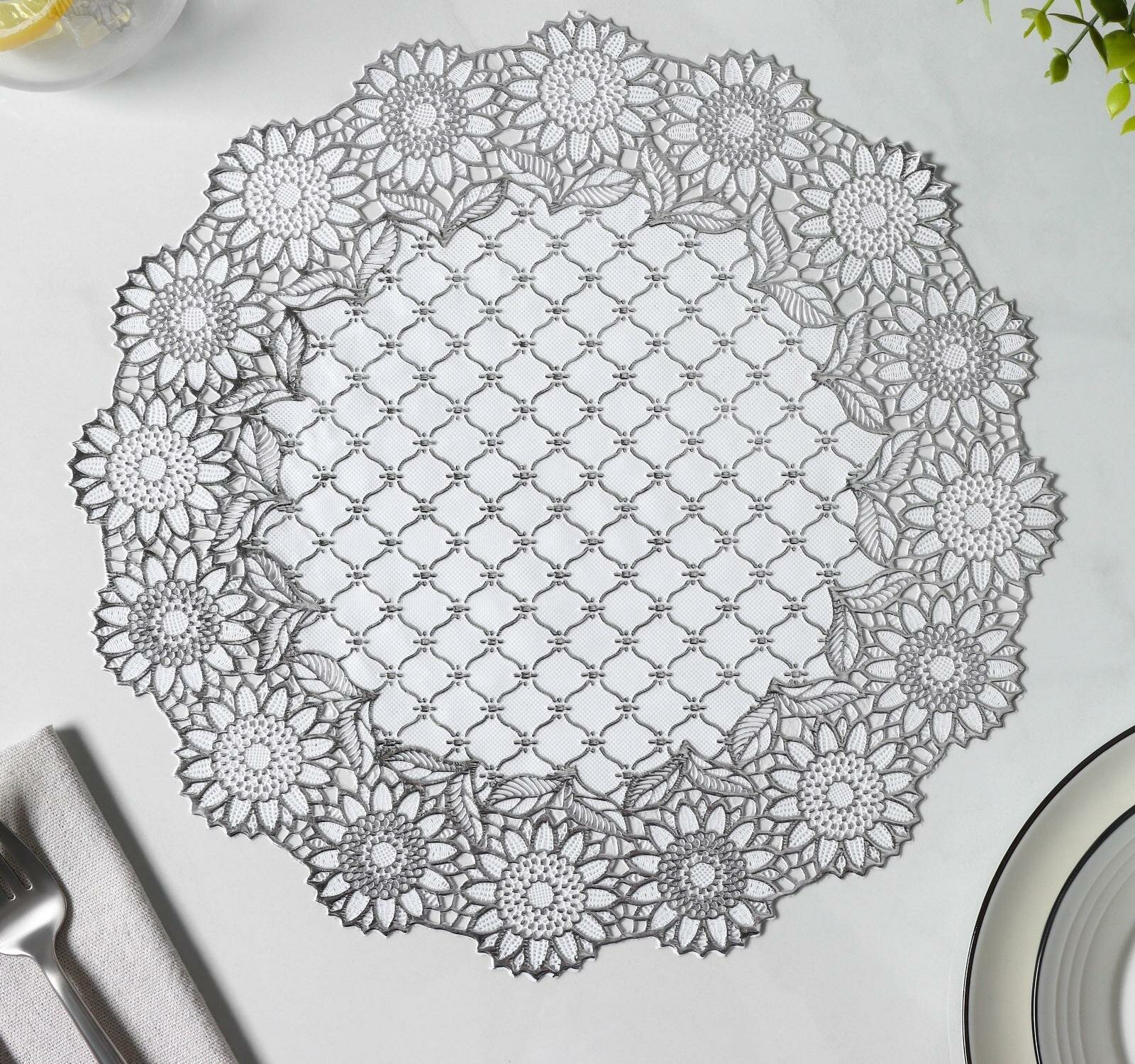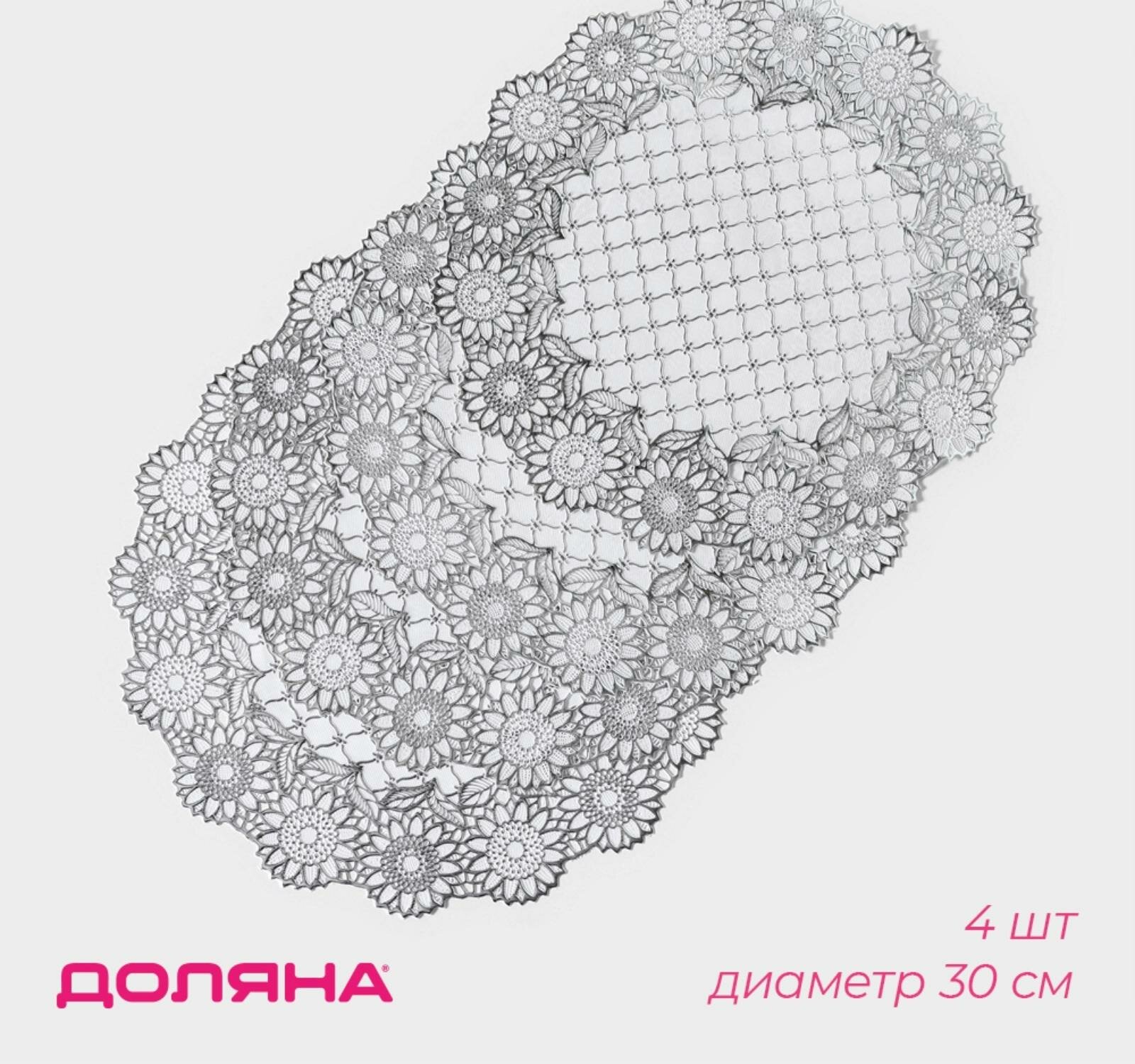 Набор салфеток ажурных Доляна «Цветенье», 30×30 см, 4 шт, ПВХ, цвет серебряный интересное: