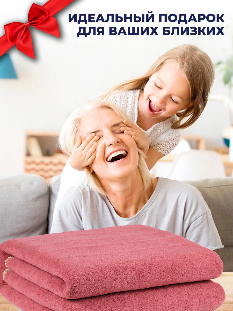 Купить Одеяло с подогревом электрическое инфракрасное с тремя температурными режимами персиковое бархатное 100 W 1.8*1.2 м